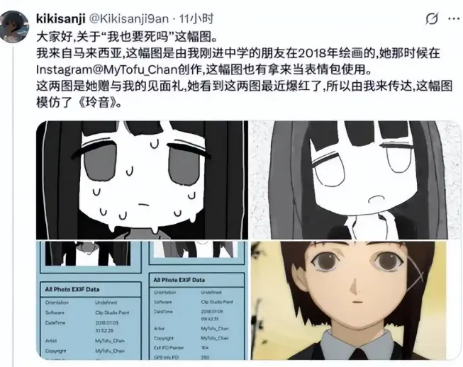 这个小漫画发布于2022年,远早于14酱在中文互联网的爆火的时间,所以基本可以实锤这就是作者本人了。不过还是没有找到原图,因为这个画师把之前的内容清理了。