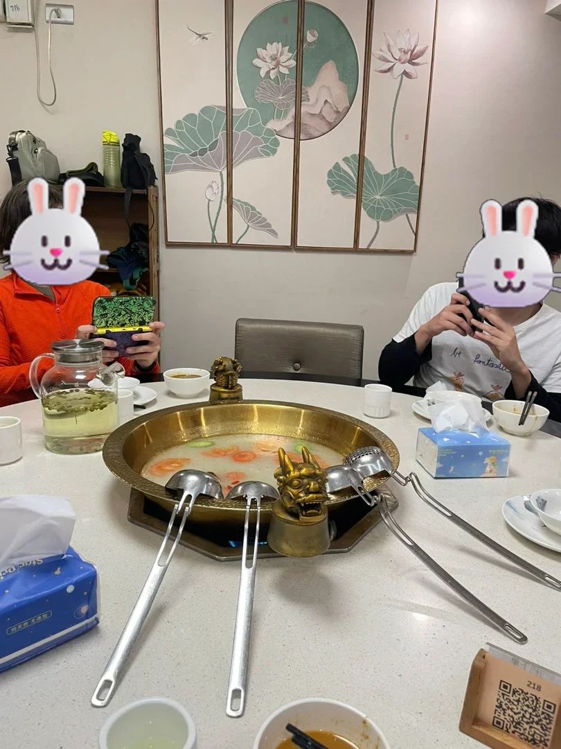 我其实有点喜欢辣火锅的,但是我的队友有的人吃不了太辣,所以只能点不辣的,然后dip,太菜了!!