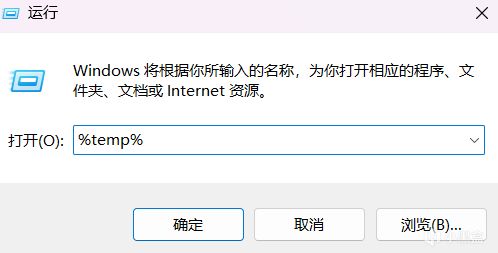 在桌面按【Win+R】,在弹出窗口输入【%temp%】回车确定