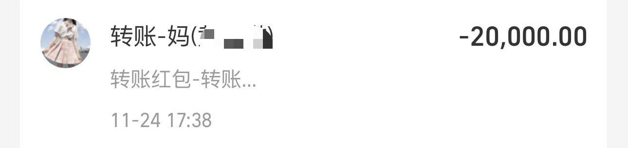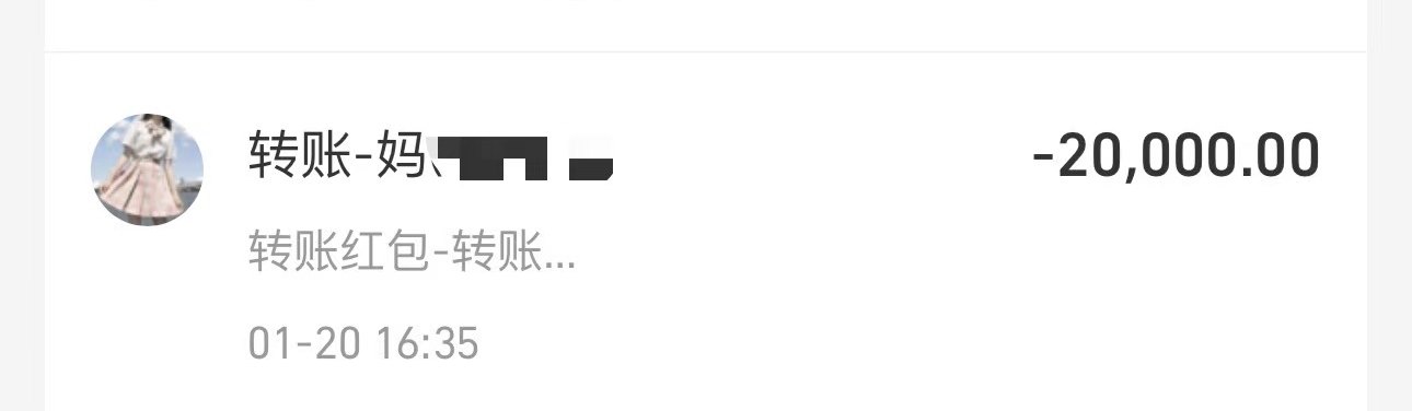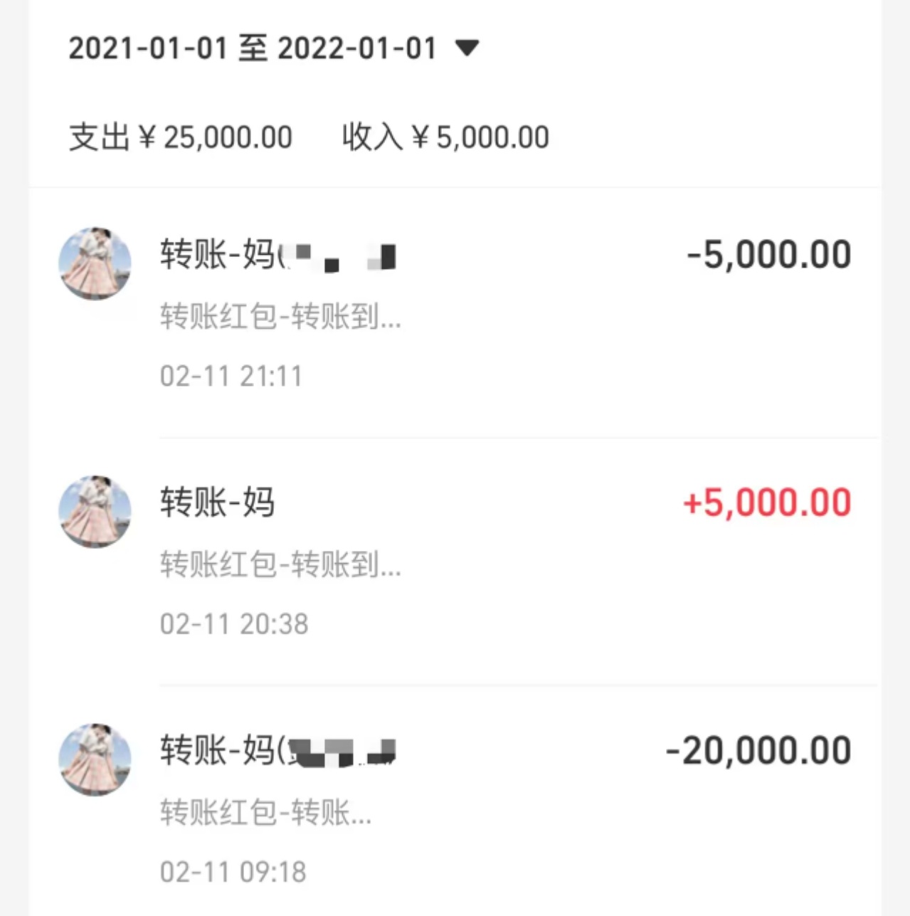 平时节假日,比如中秋端午或者爸妈生日我会给五百八百的红包,日常家里要用的一些小电器厨具什么的我买,她用的手机我买,日常洗护化妆品用完了她会喊我买,偶尔也买几件衣服给她,并且每年过年我会给我妈转2万