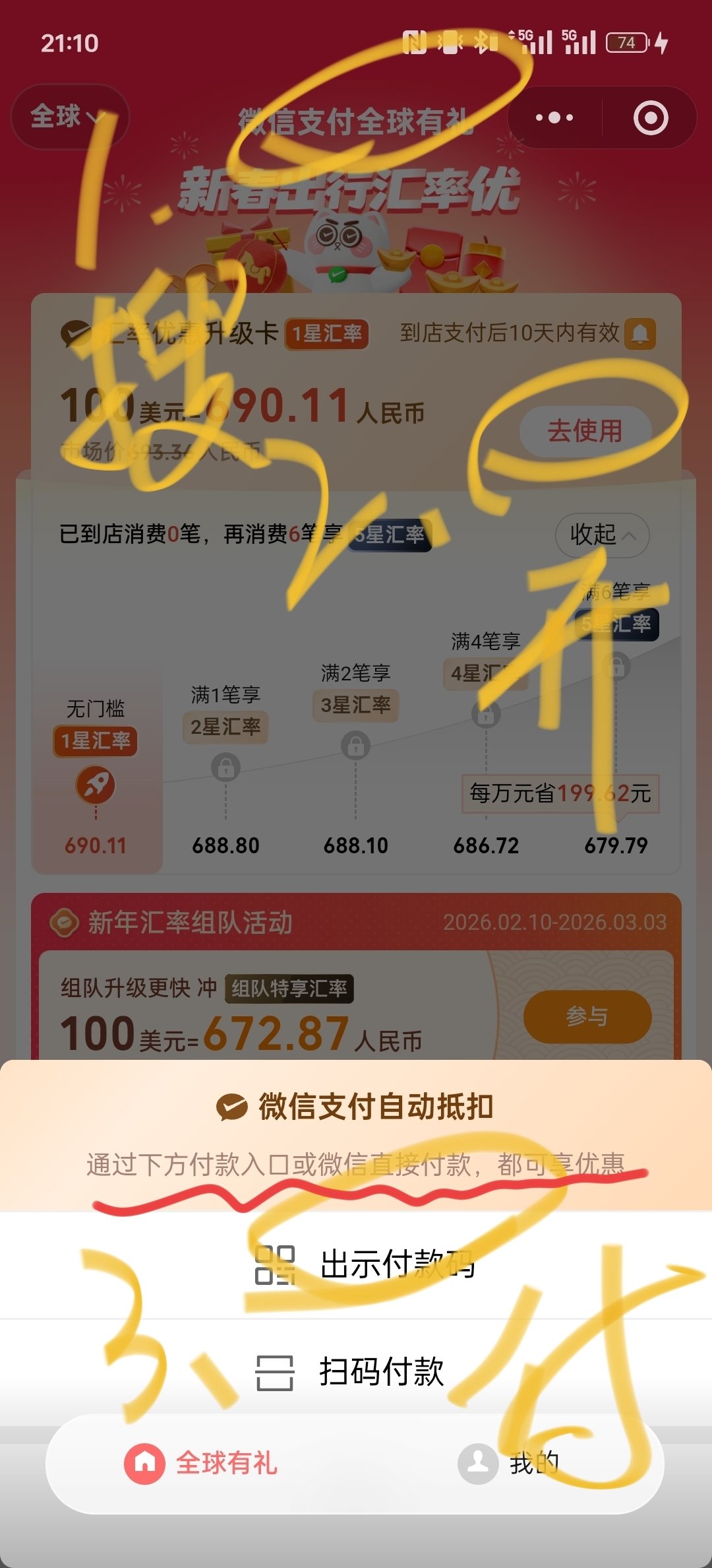 3.支付宝到地点刷新支付宝自动切换主页为“跨境支付”,点击进入有引导,弄完直接给扫像内地一样。