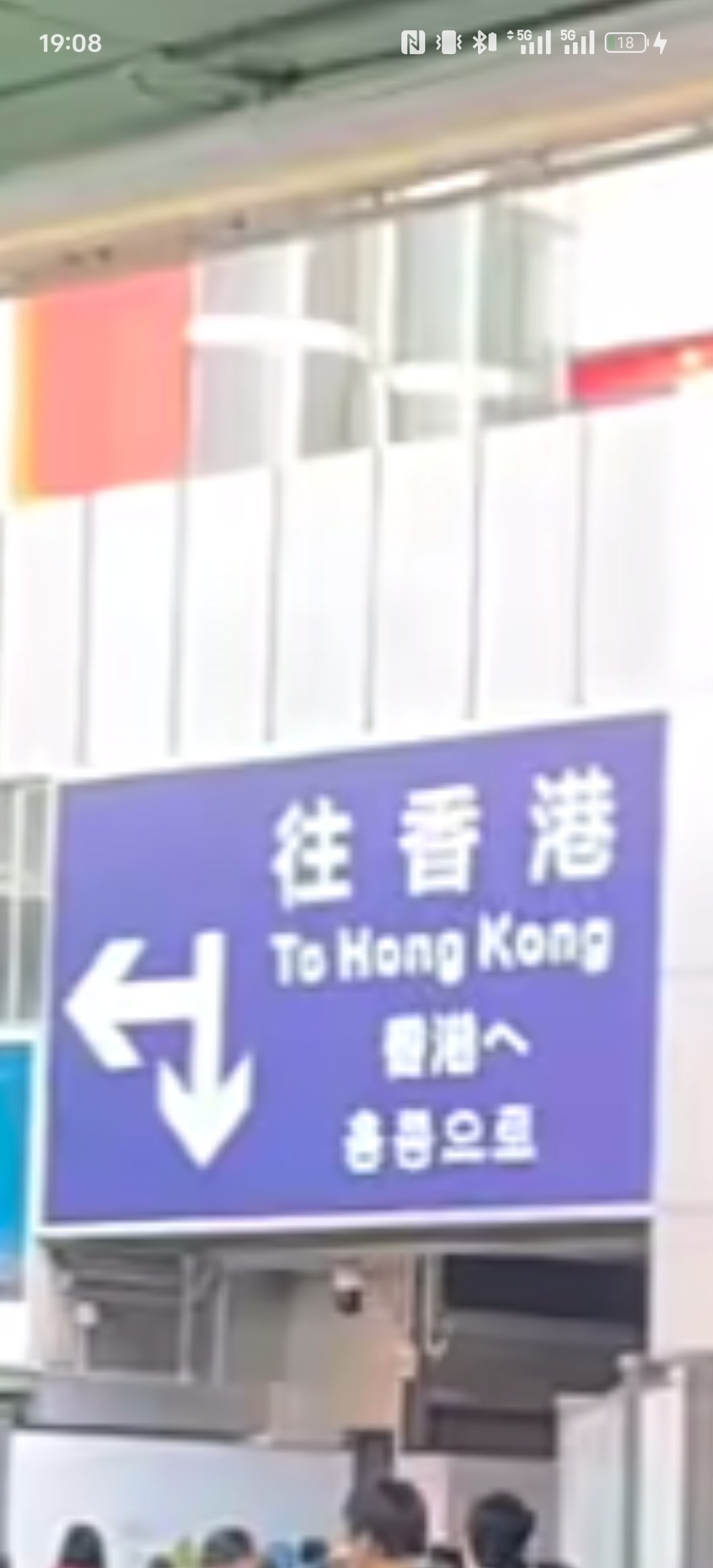 3.进入建筑物上扶梯,看清头顶告示牌有区分大陆访港旅客(橙色)/外国人/港澳居民。跟着走。