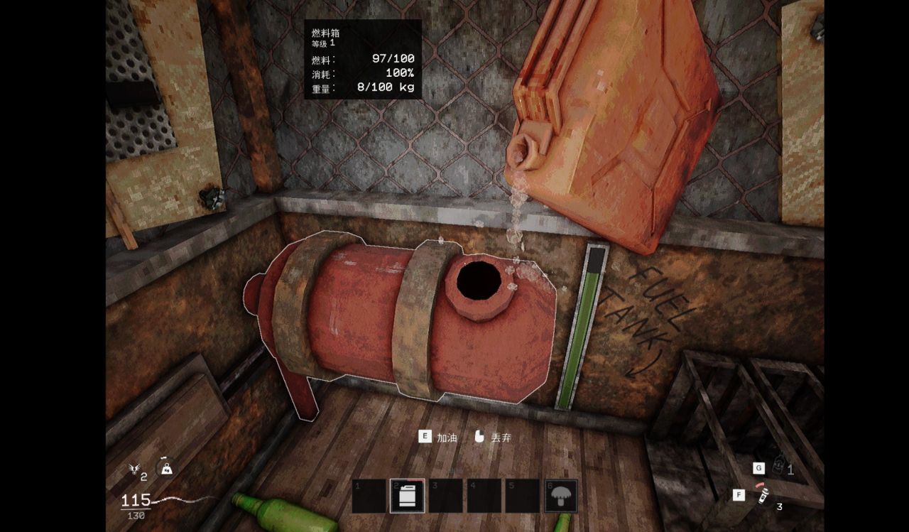 油桶则可以用来给电梯内的燃料箱加油,搭配未损坏的电梯可以一路往下探索。还有就是可以直接用来喂给笼子,加的饱食度挺大的,但是会获得相应的惩罚。