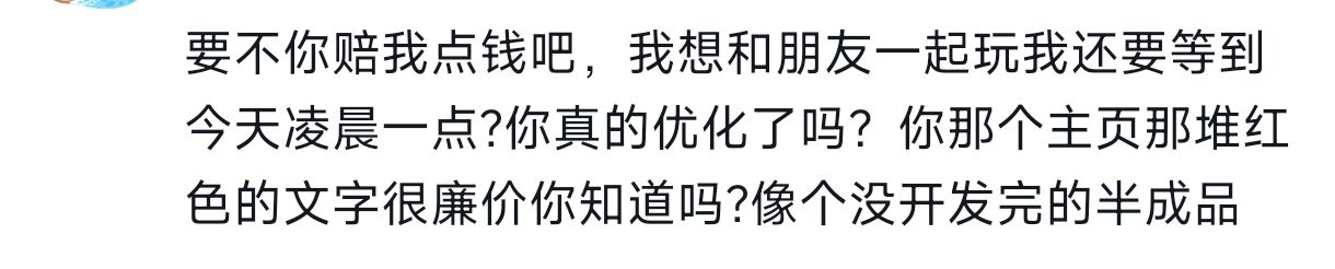 玩家表示既然能这么快做完,为何之前不早做?此外,部分玩家也在提及未被注意到的优化问题。