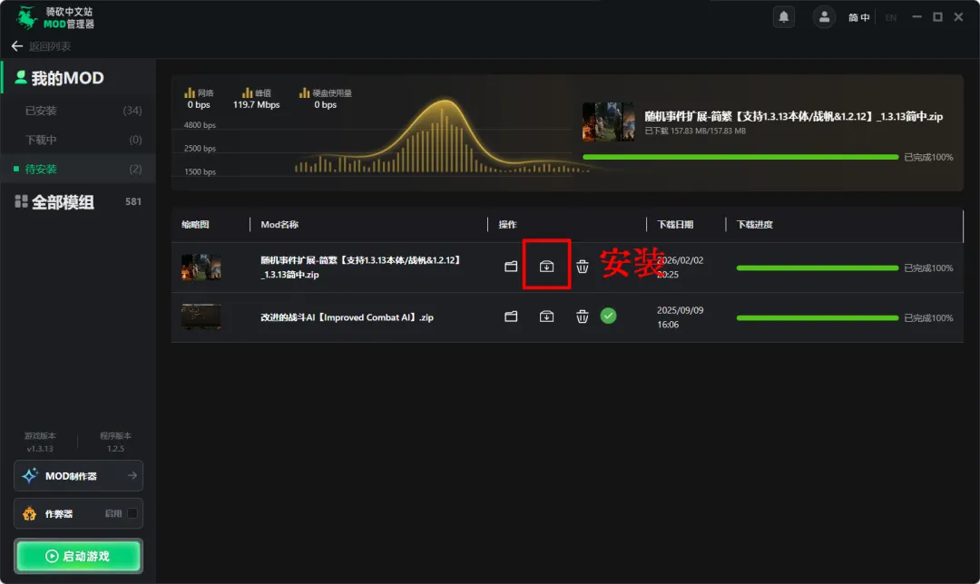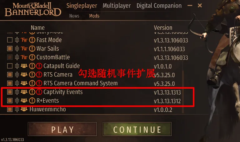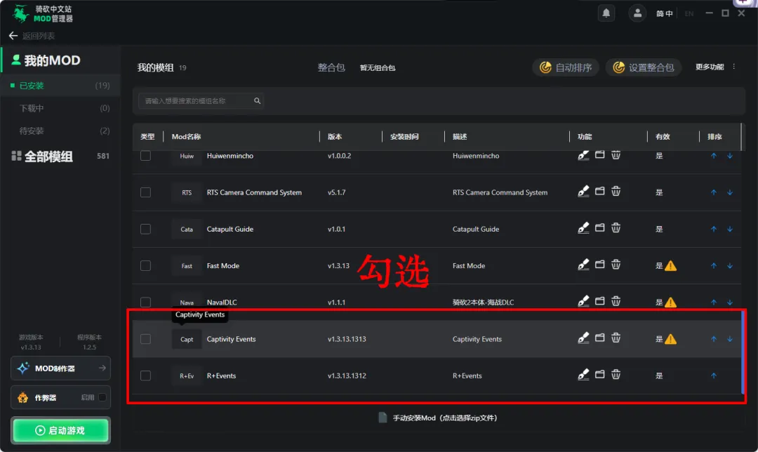 3、安装好“随机事件扩展”MOD后,打开启动器,按照下方图片进行排序即可进入游戏