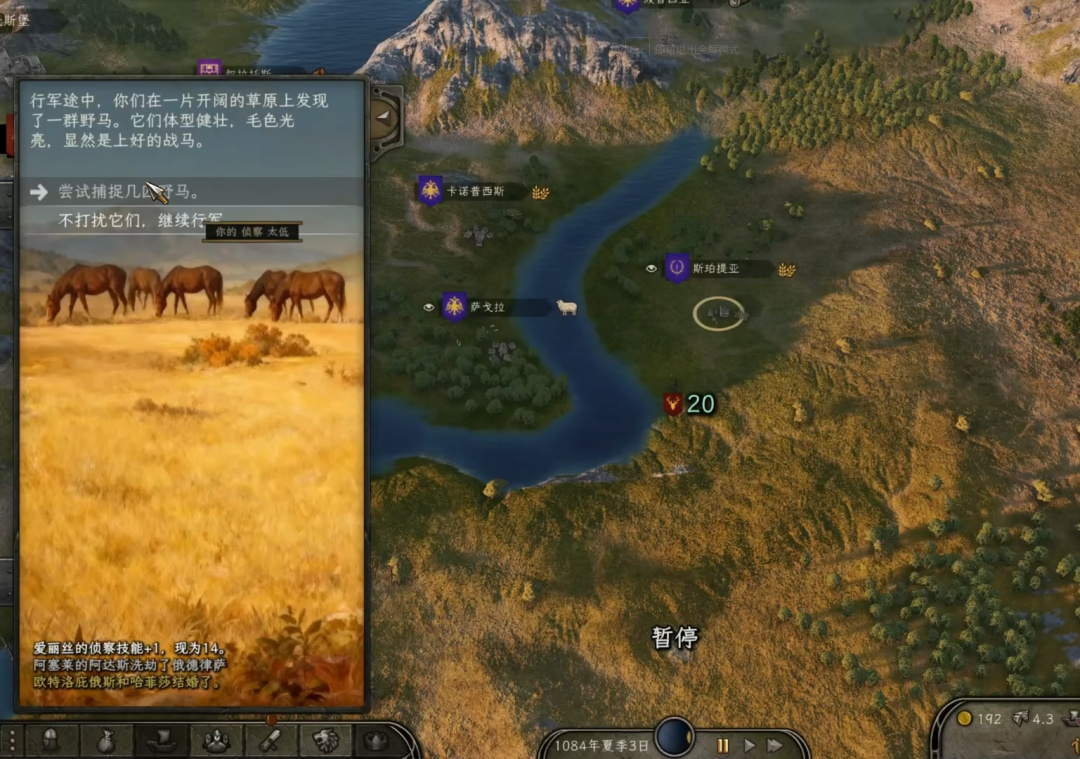 可能获得稀有装备、大量第纳尔、部队经验、技能提升,或增加与NPC的关系,也可能损失资源、卷入战斗、身负重伤甚至被关押。许多事件都具有明显的价值取向,你可以路见不平拔刀相助,提升声望;也可以和土匪、帮派分子同流合污,做劫匪巨寇,但也会导致声望下降。由于代码问题,MOD涉及的技能变化统一都是下降,青色的实际都是提升(如下图),只有红色才是真的下降。