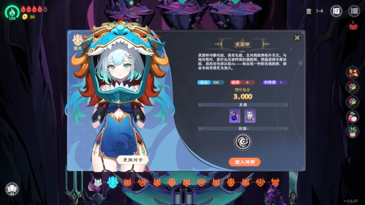 它的爬塔元素很经典,赢下对战就可以获取带来强力加成的灵佣,提升构筑的被动遗物,作为(出老千)主动道具的祭品和一些金币,以提升自己的麻将得分质量。