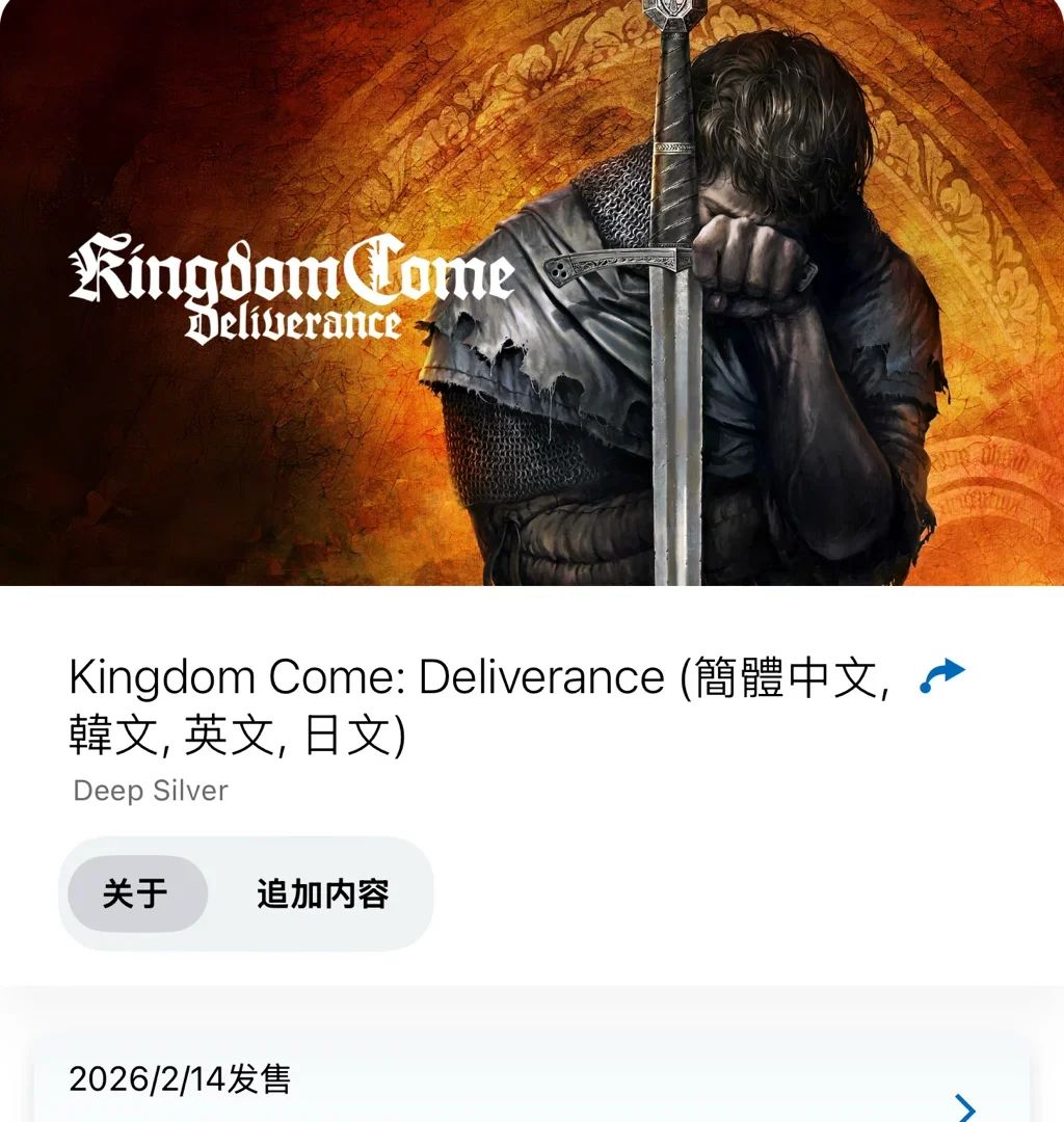 在《天国拯救》发售八周年之际,《天国拯救》推出次世代重制版,所有拥有原版的玩家直接可免费升级到次世代版本,本次包含PS与xbox主机平台,终于加上了简体中文