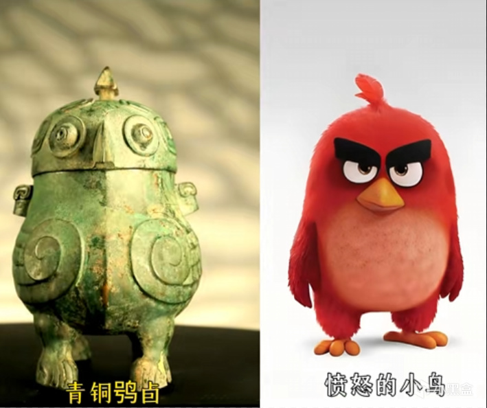青铜鸮卣(xiāo yǒu)属于商周时期的青铜礼器酒器,原来脑袋是个盖子,和这个小红鸟有那么一点点神似吧。