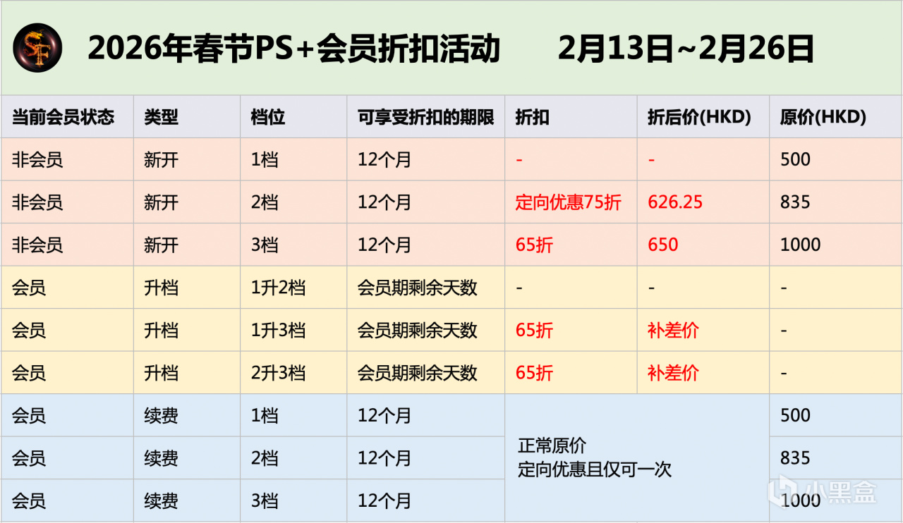 大家好,PS港服商店2026年春节PS+会员折扣已于13日夜里正式上线,索尼是越来越来爱搞定向优惠了,具体如下(定向优惠以自己PSN账号为准):