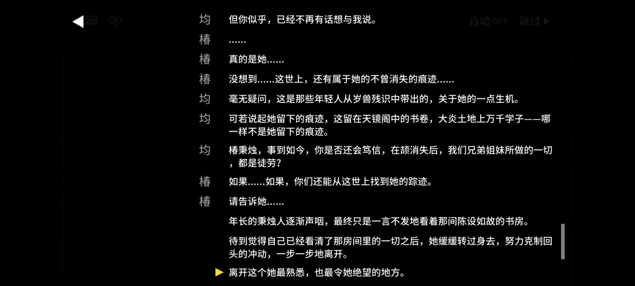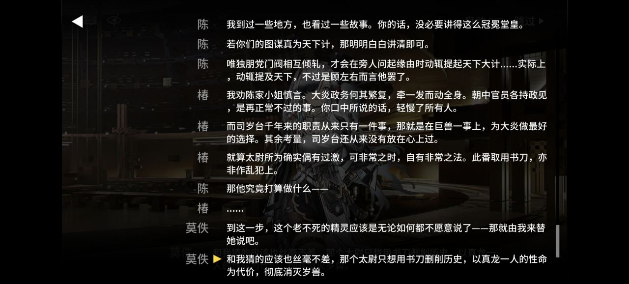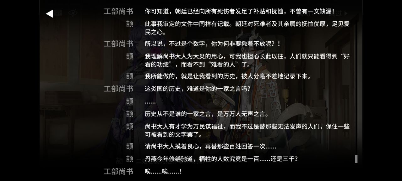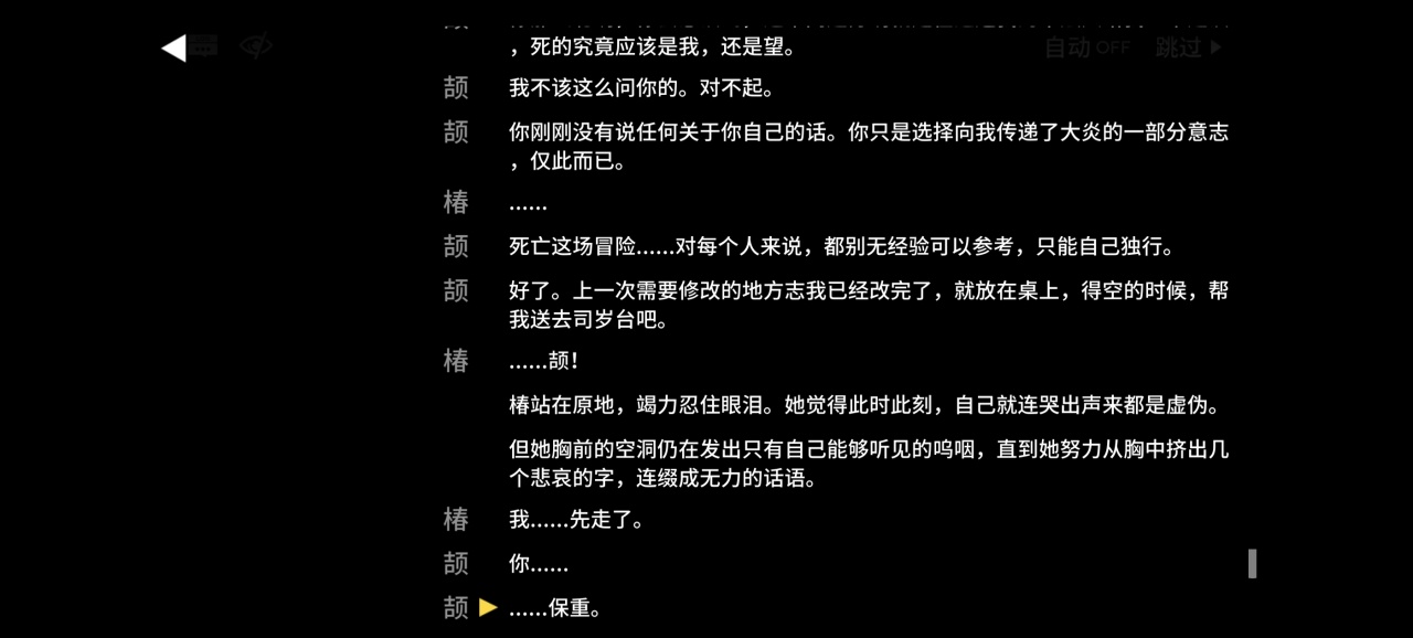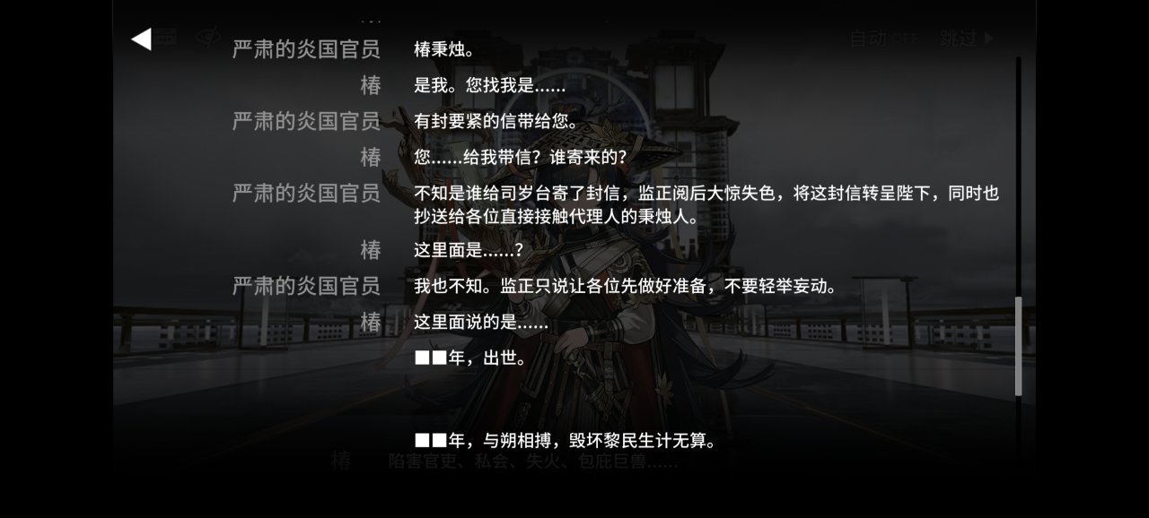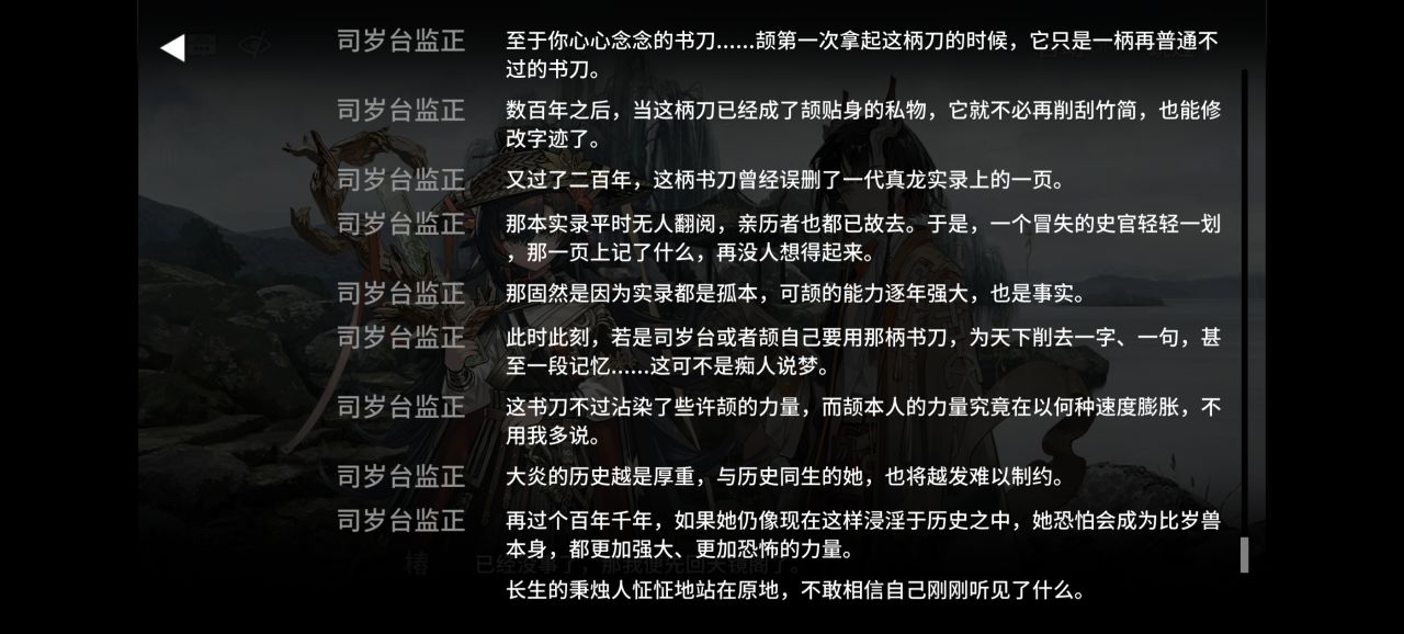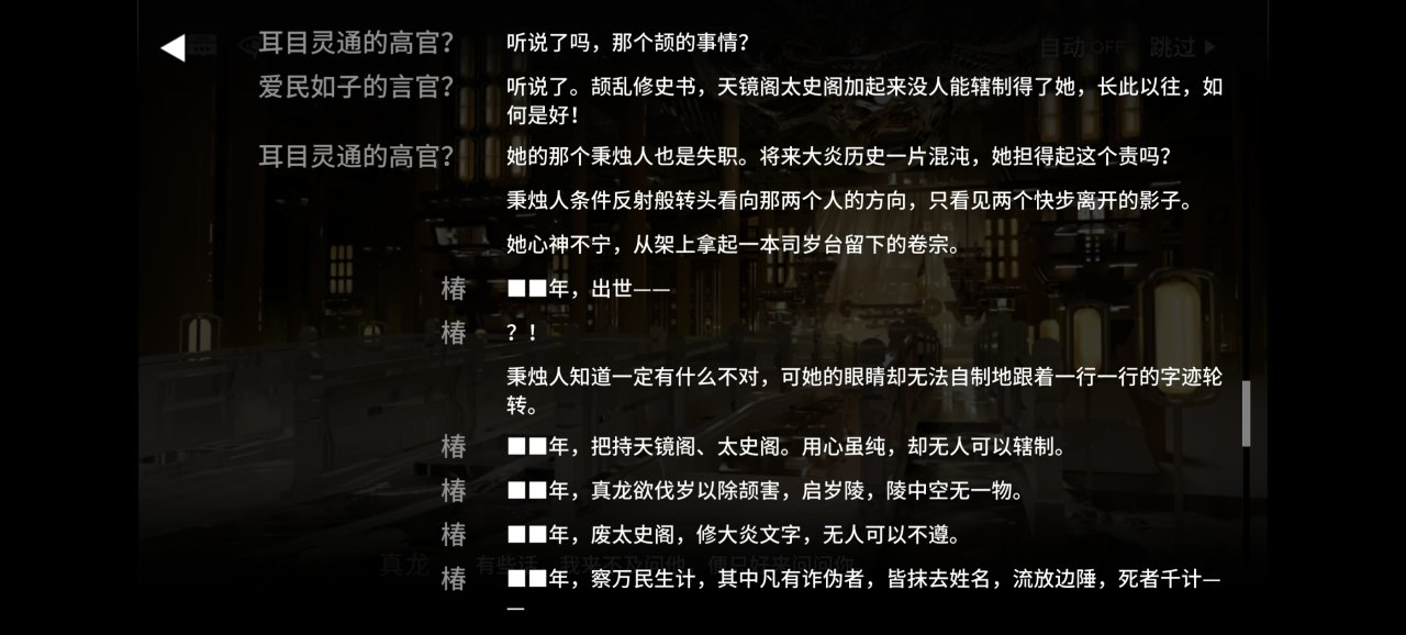 颉的前任秉烛人被人工退休了,她来接替岗位,但是她从事这个岗位是有私心的。颉的工作跟史书有极大的关联,作为风评被害的种族,她想在这里为衍兽精灵翻案。后来颉也答应了她