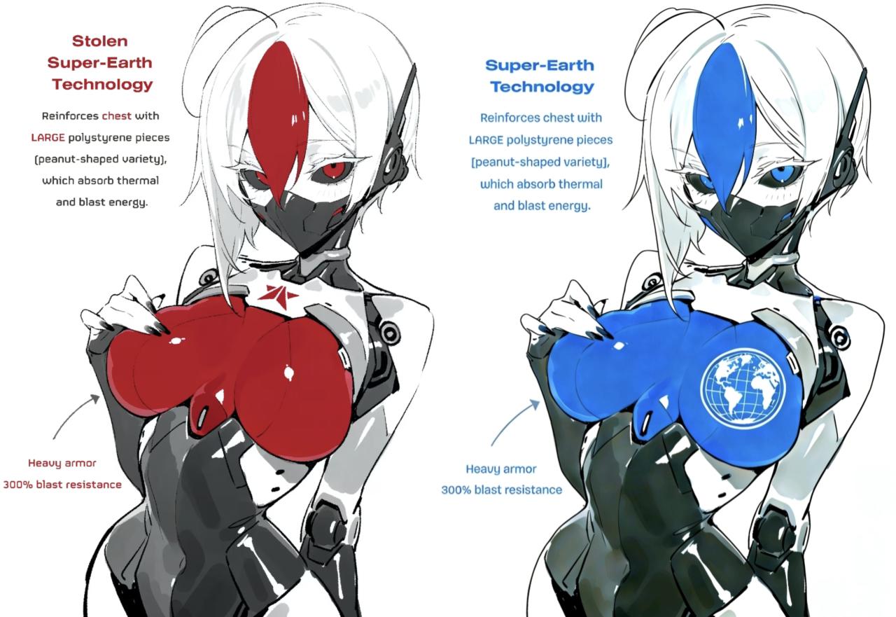 这个机娘的概念来源自《绝地潜兵2》的社区MEME,是玩家们虚构生化斯坦宣传部的“征兵策略”: