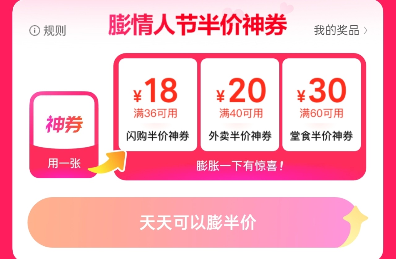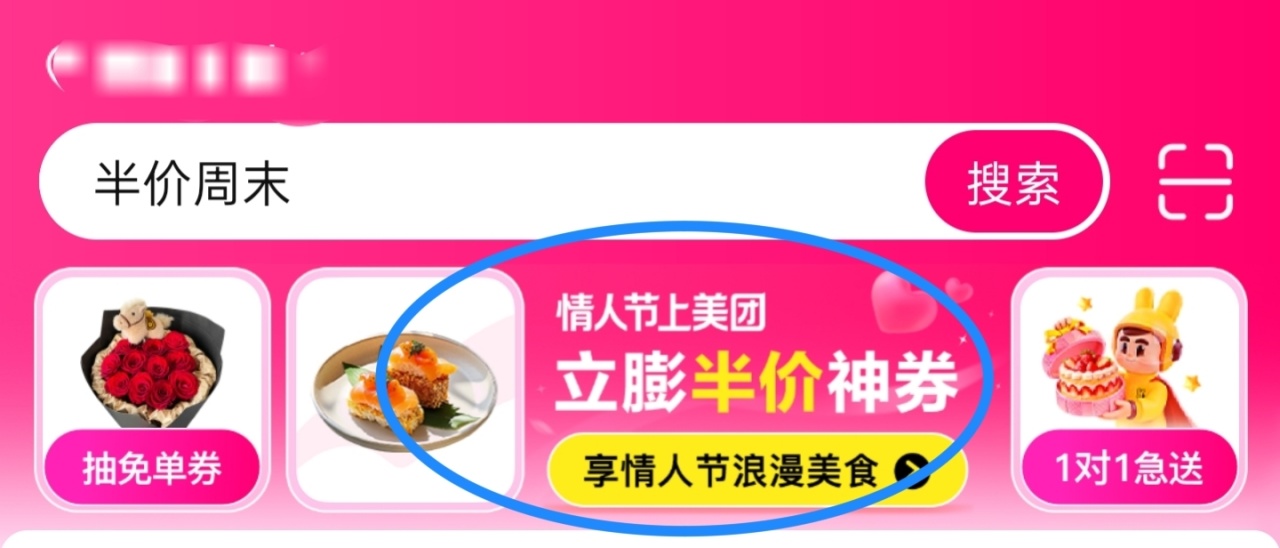 第一个入口:某团搜:半价周末,然后进去膨胀,这里可以膨胀出40-20,也有别的半价券