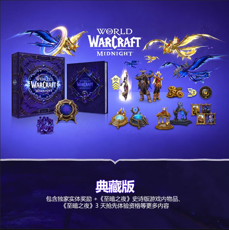官方介紹,至暗之夜提供三個預購版本:標準版、英雄版與史詩版。標準版包含《地心之戰》與至暗之夜的內容,附贈80級角色強化體驗、住房系統提前使用權及500商人代幣。