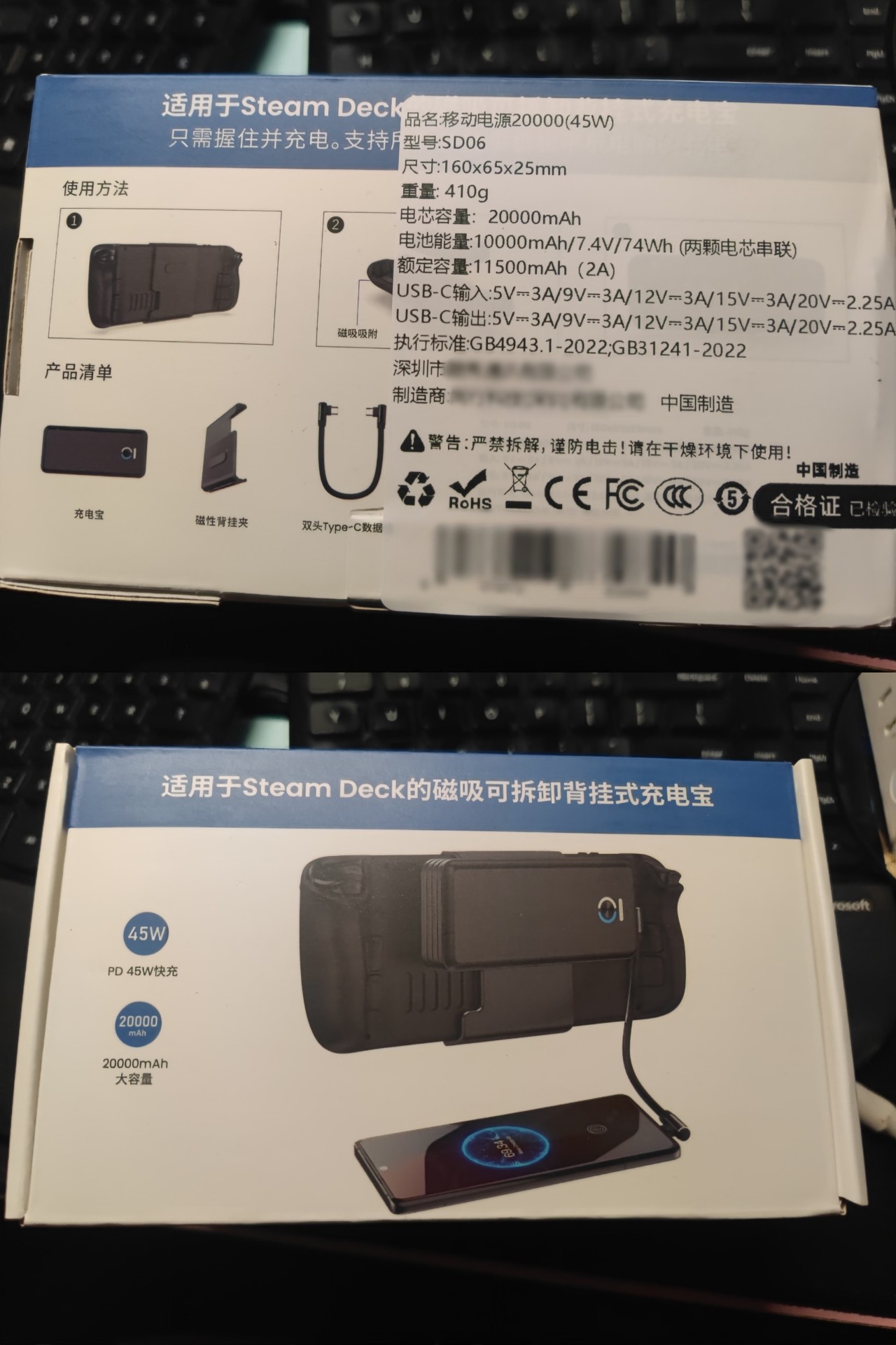 网上却有另外一款磁吸电池,20000毫安时,45w输出,贴在主机上可以为SD持续供电。