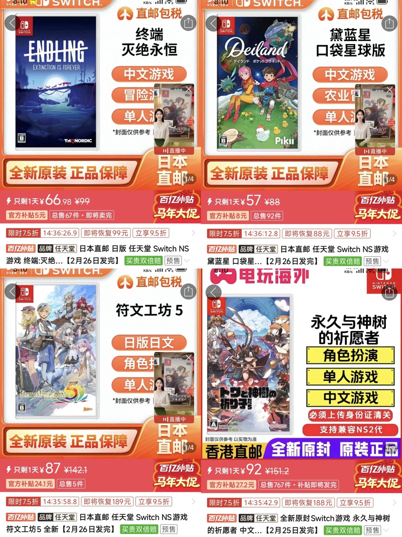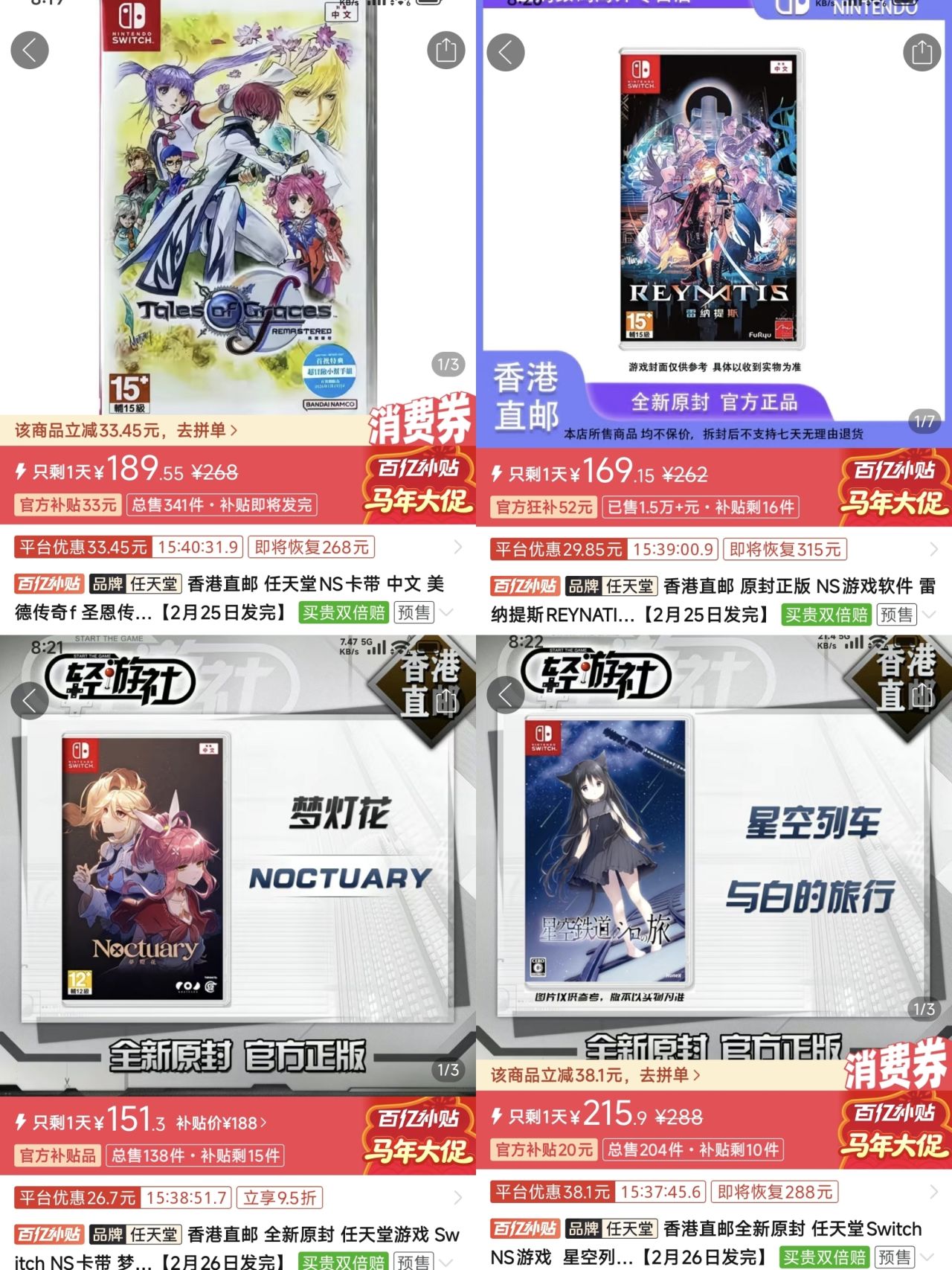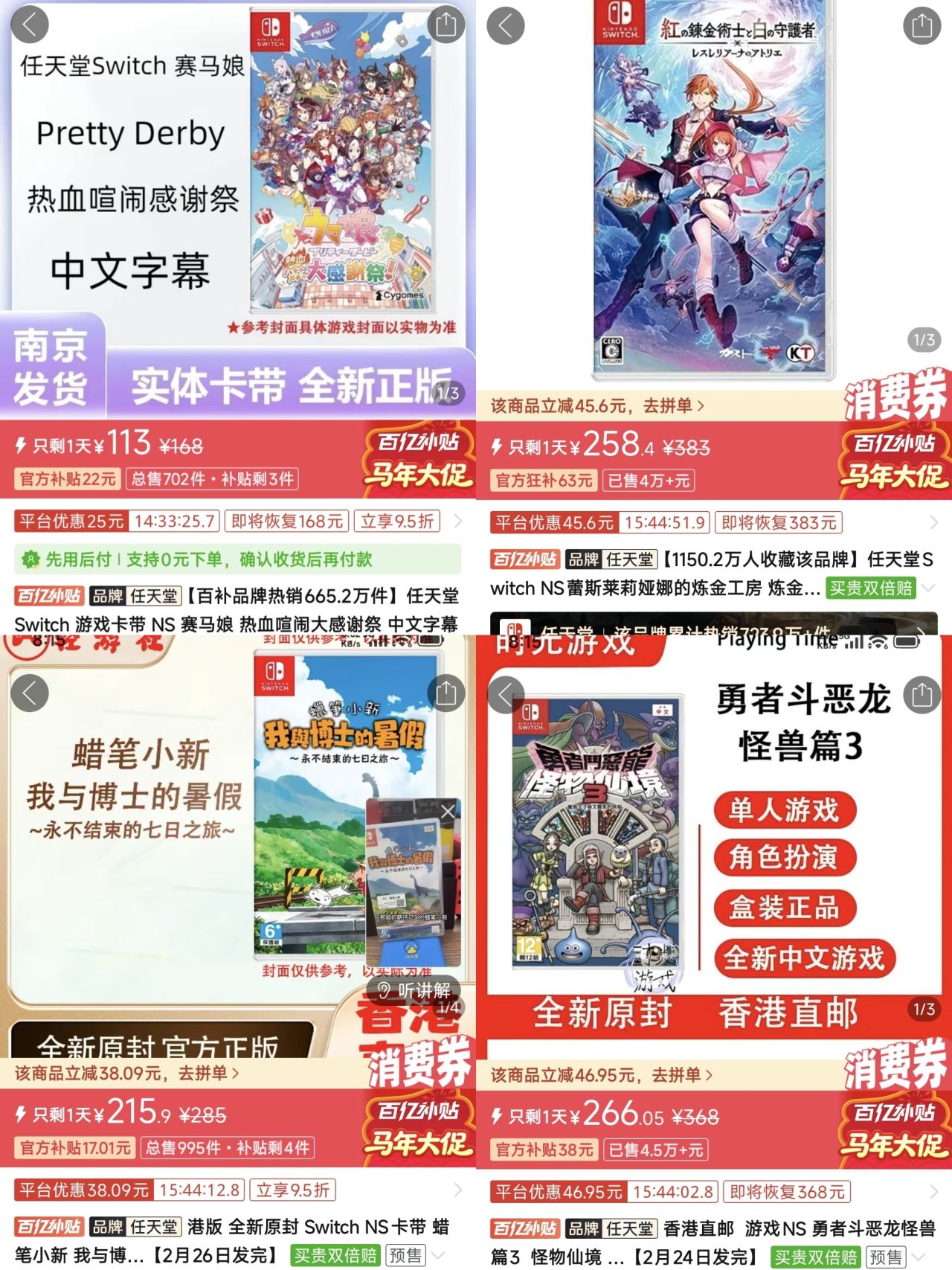 【2.15】今日switch卡帶好價(實時更新)