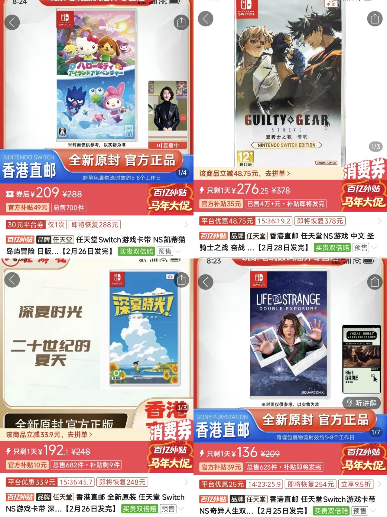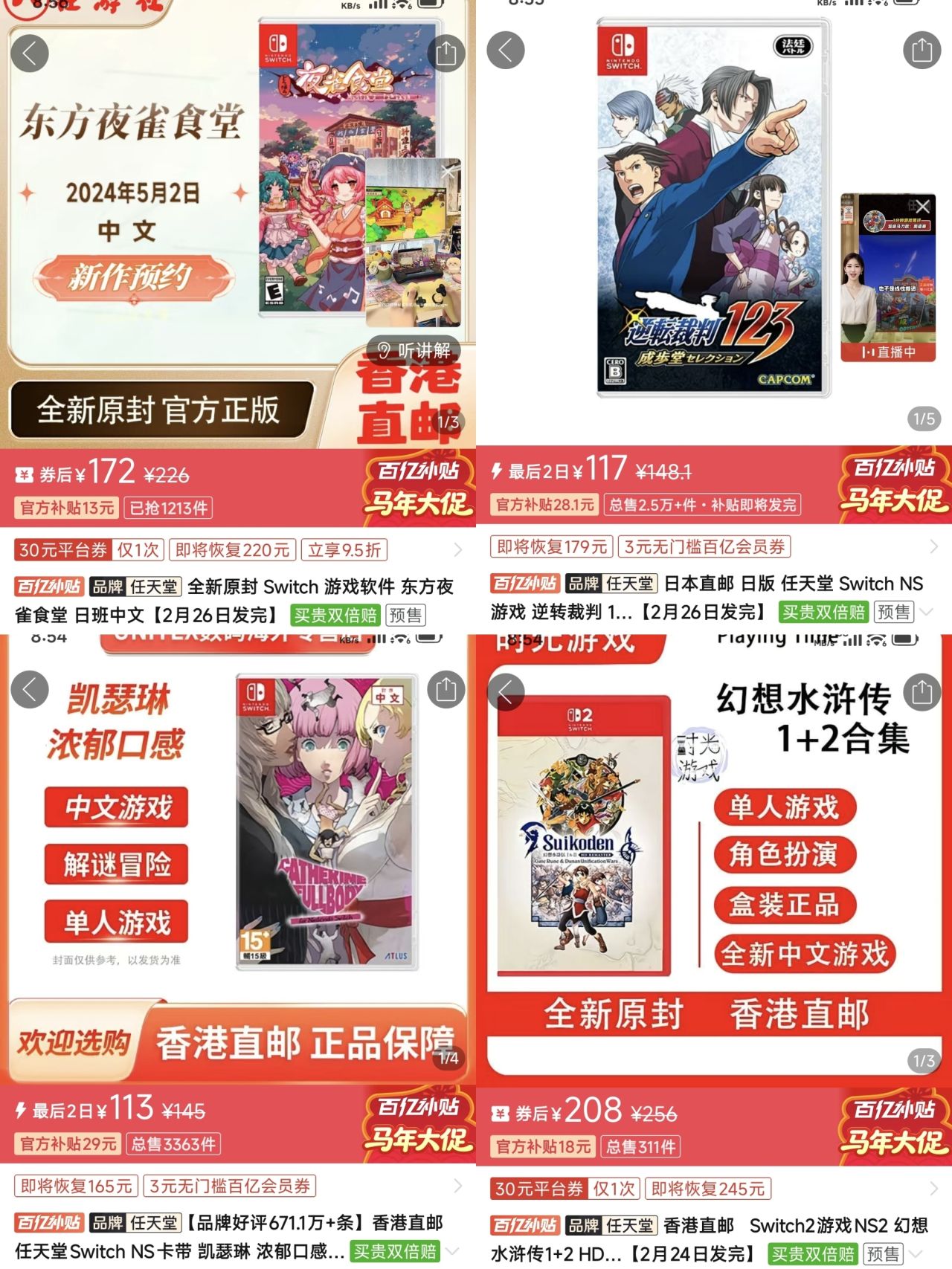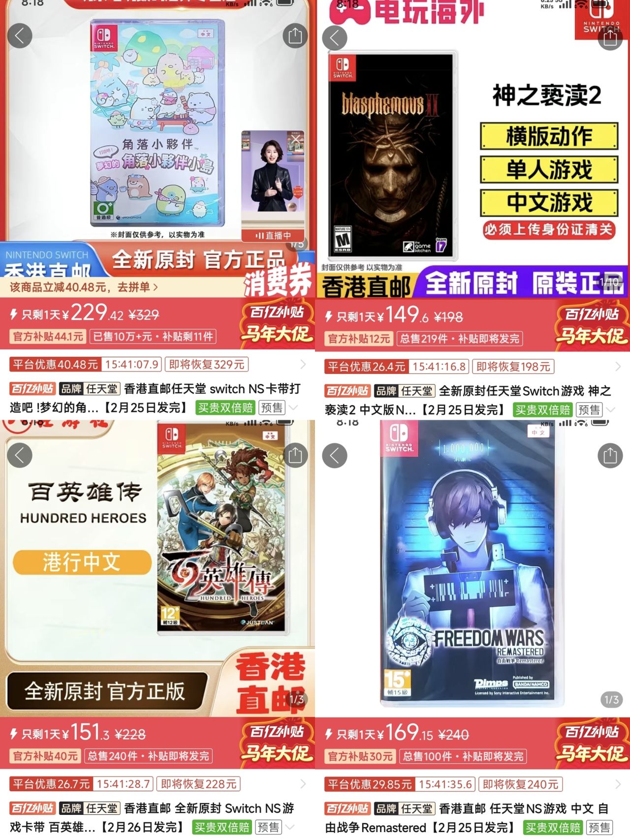【2.15】今日switch卡帶好價(實時更新)