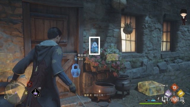 2级锁区6,霍格沃茨西南方-费德罗特传送点,东西在同名房屋内,传送点背后朝东南走,正对面有个房屋,原形立现可以看到在里面,开锁前右边拿上魔杖握柄,接着开门右边箱子,朝二楼走有收藏宝箱和袋子,接着下楼右边窗台就是隐形兽月亮了