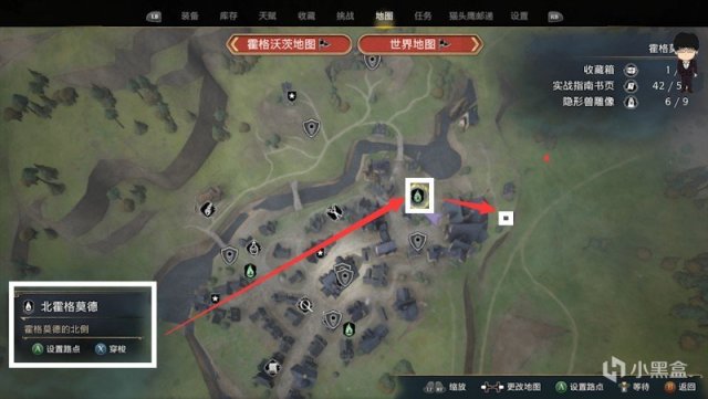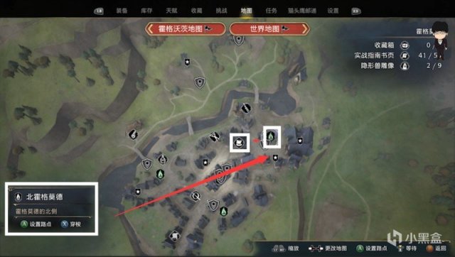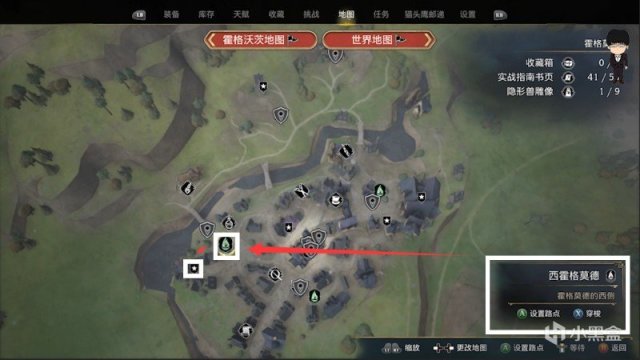 无锁区6,北霍格莫德传送点,抵达后前往风雅牌巫师服装店,位置在传送点朝西方向,进店右转桌子上就是我们要找的隐形兽月亮