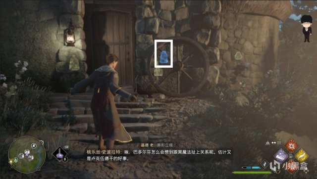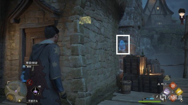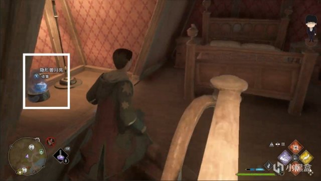 2级锁区5,西霍格莫德传送点,面对传送点右后转弯朝北走,第二个房子就是,原形立现定位可以发现在二楼,开门进入上二楼,拿上箱子和隐形兽月亮