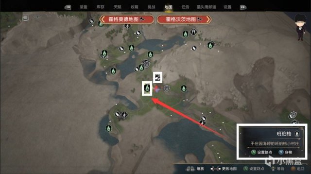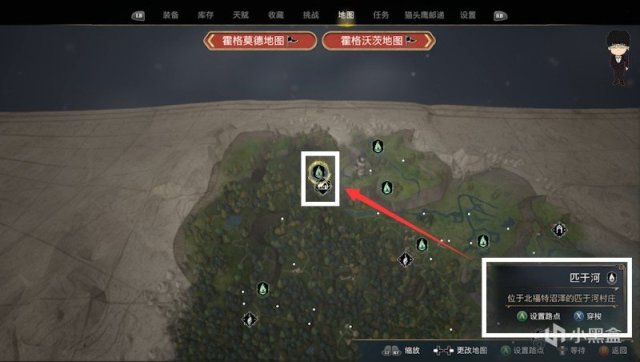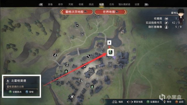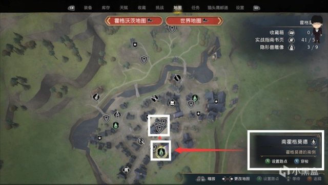 1级锁区5,南霍格莫德传送点,进入三把扫帚酒吧获取,传送点位置朝西北进入酒吧,进门左转上到顶楼,走到顶有个1级锁门,进入后左边有个宝箱,右边收藏宝箱,中间就是隐形兽月亮,拿完记得原形立现顺便拿下指南页