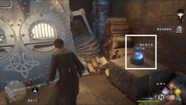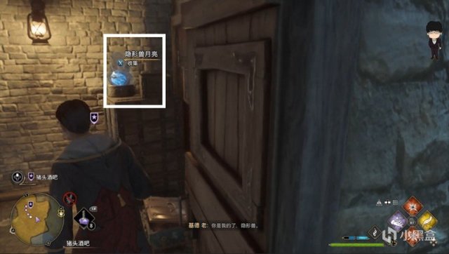 无锁区5,西霍格莫德传送点,朝西南往下进入猪头酒吧后门,打开门就能发现箱子上的隐形兽月亮