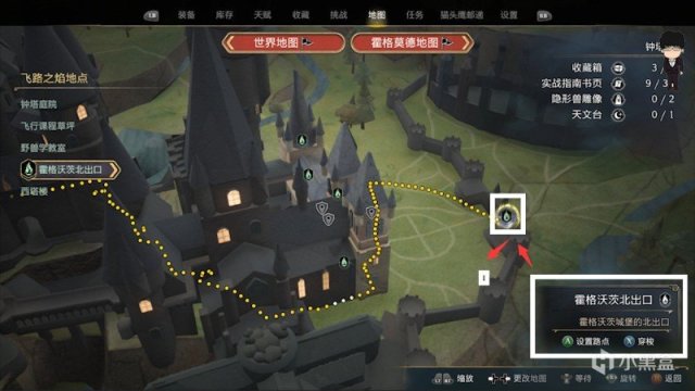 1级锁区3,霍格沃茨-南区-钟楼庭院传送点,朝北出门往前,再次进门走到底左转到底,开门前拿上门口的指南页,开锁进入左边地上有宝箱,从厕所间第三道门进入,记得拿上右边的宝箱,剩下就是隐形兽月亮了