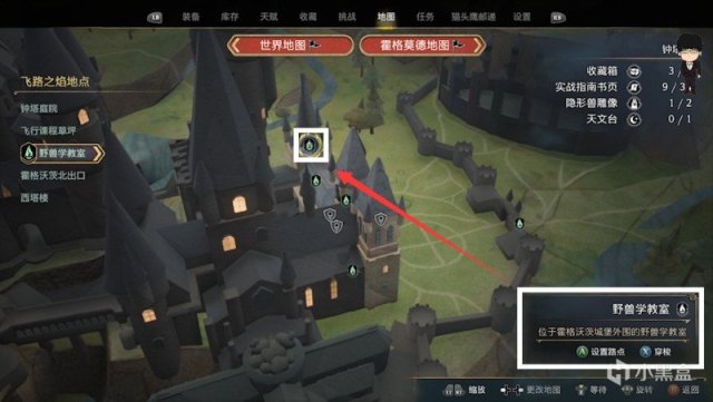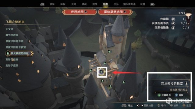 接着是无锁区隐形兽月亮,首先是菲戈教授教室内,通过霍格沃茨天文学区的菲戈教授传送点抵达,进入教室后走到底就能看到桌上的隐形兽月亮