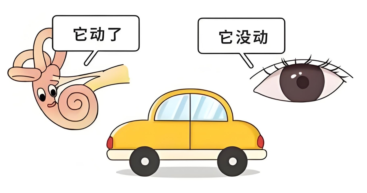 大脑同时接收到“运动”和“静止”两个截然相反的指令。它无法理解这种矛盾,最后引发前庭系统与自主神经系统紊乱,进而出现眩晕、恶心、出冷汗、想呕吐等反应。