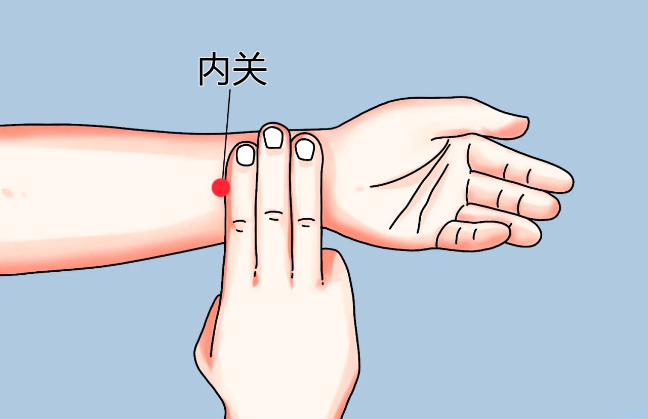 可以尝试按压手腕内侧的内关穴。它位于手腕横纹向上约三指宽、两根肌腱的中间。持续用力按压几分钟,对部分人有缓解恶心的效果。