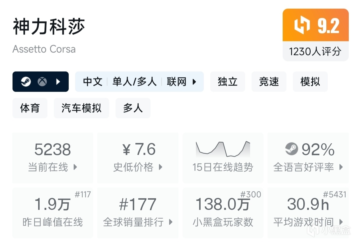 但从游戏是否有做方向盘适配这个角度来说,神力科莎的体验感确实更好一些能感觉到力反馈的些许差别。