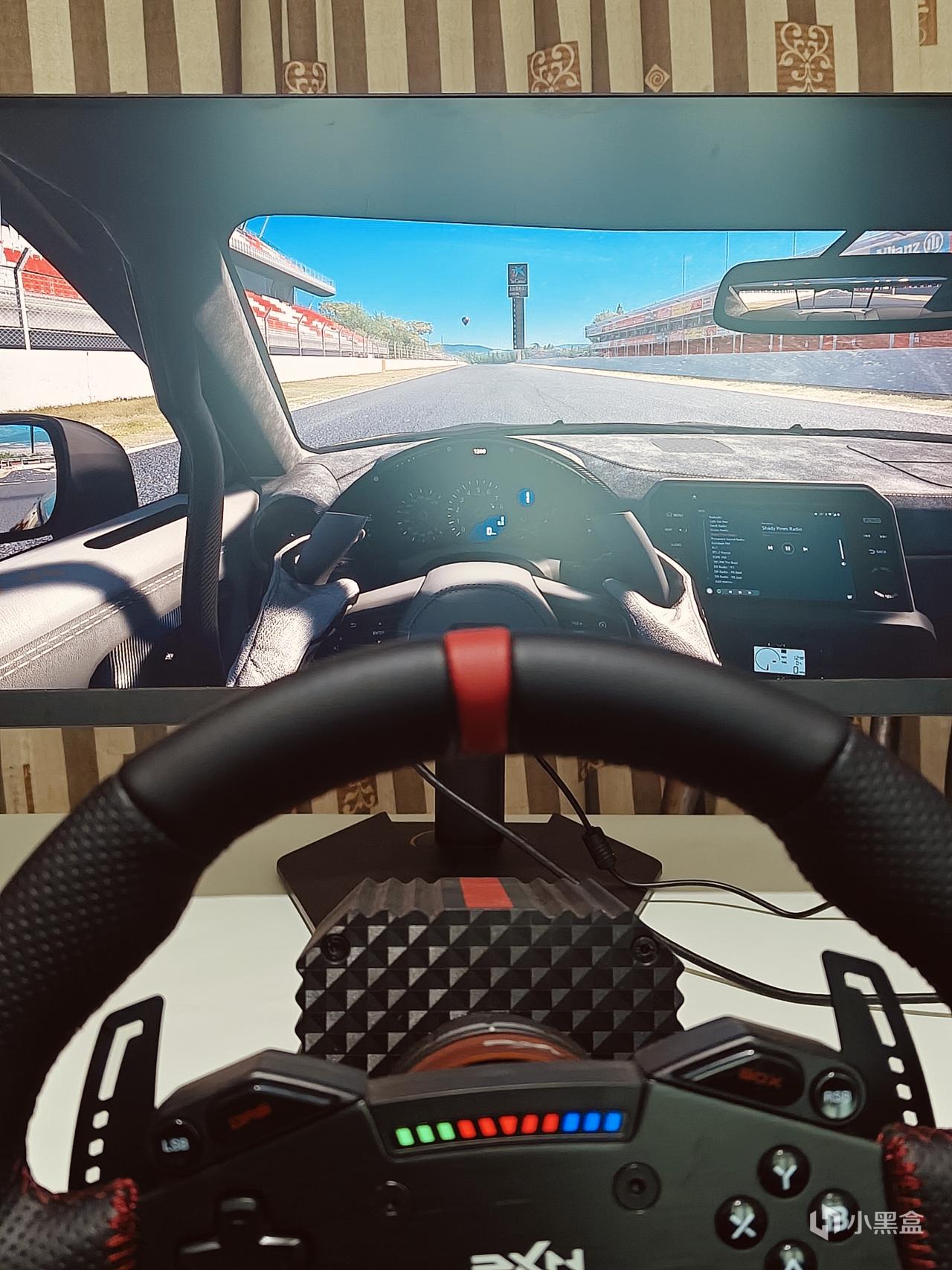 时间不是很长,但是确实能体验到用模拟器跑起来的爽感,那种速度感+操控感。方向盘也很跟手,得益于24位磁力编码器,快速精准输出,没有那种转动方向了游戏里慢一拍的迟滞感。