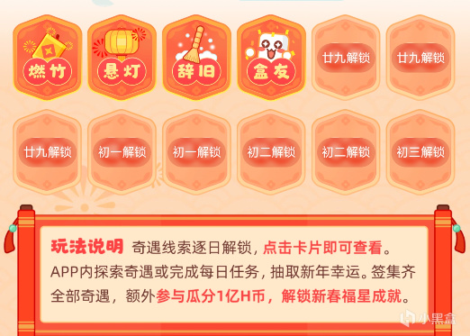大家新年好啊!黑盒新春活动「新春奇遇大作战」已开启,一文帮助你拿下限时成就并参加一亿盒币瓜分。