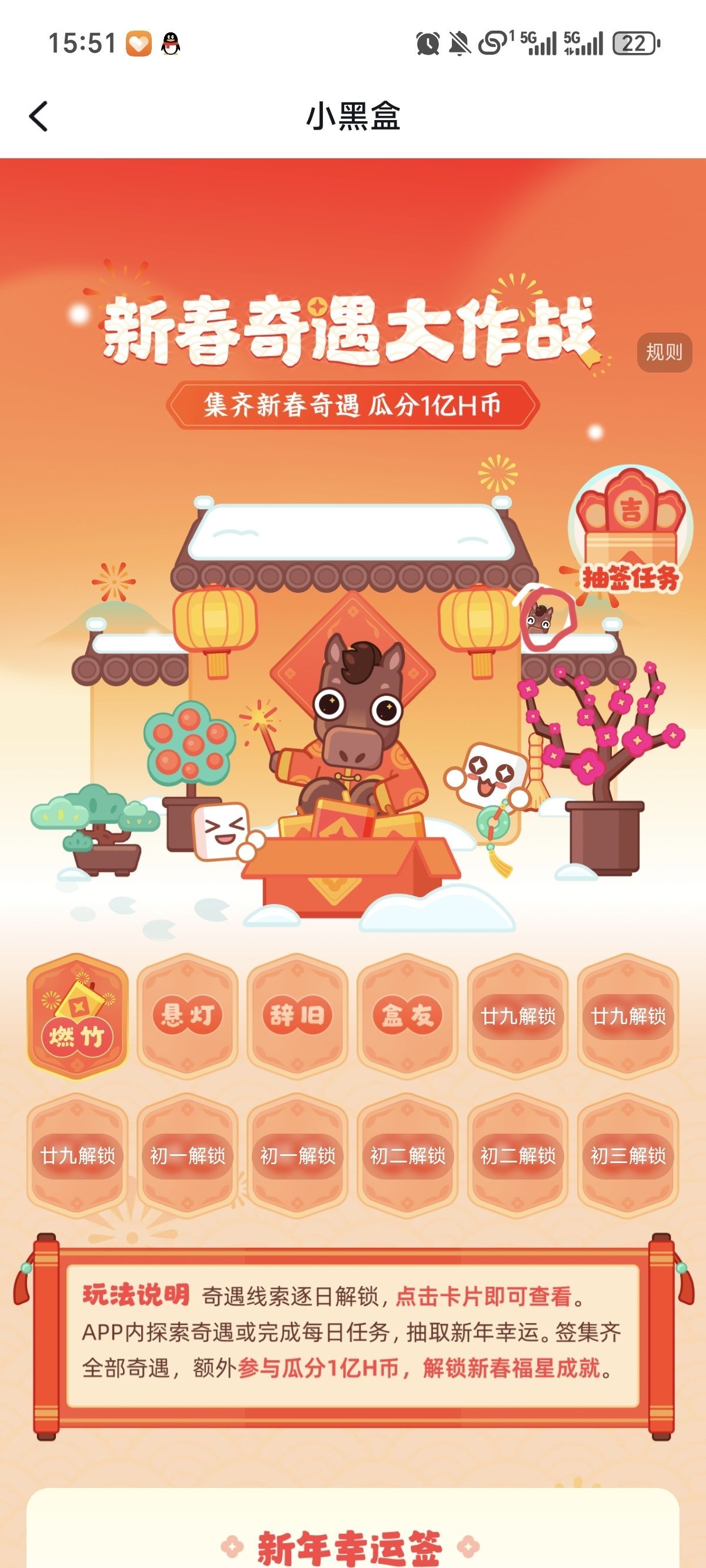 完成相应谜题,集齐全部奇遇,还可额外参与瓜分1亿H币,解锁新春福星成就!