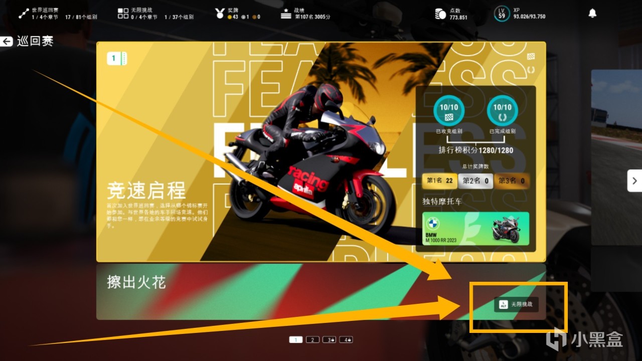 如何進入無限挑戰?將一個章節全金牌後,即可在章節頁進入無限挑戰(鍵盤Alt,Xbox手柄Y)。