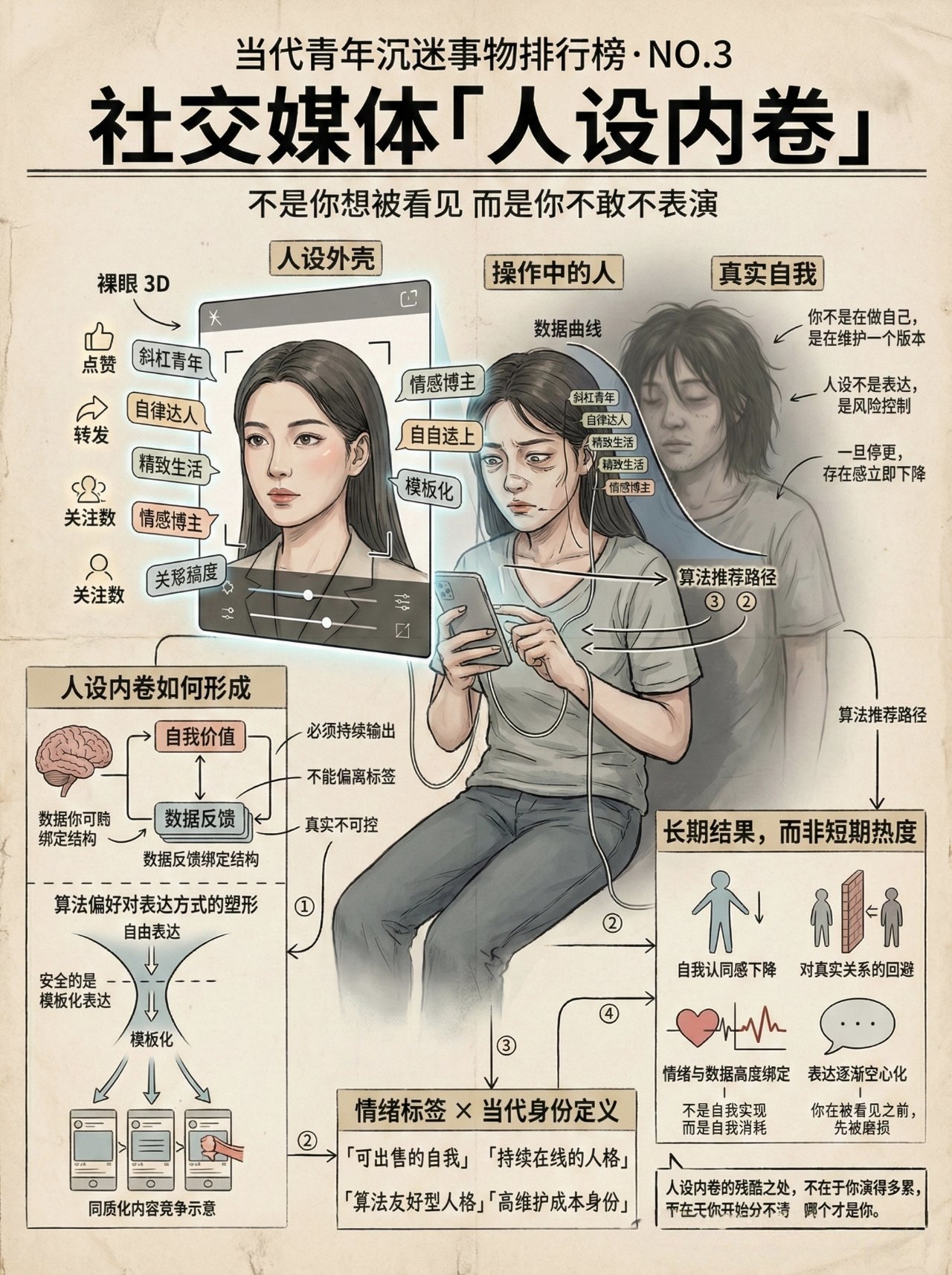 我们在朋友圈、小红书里精心打造人设,用滤镜和文案包装生活。