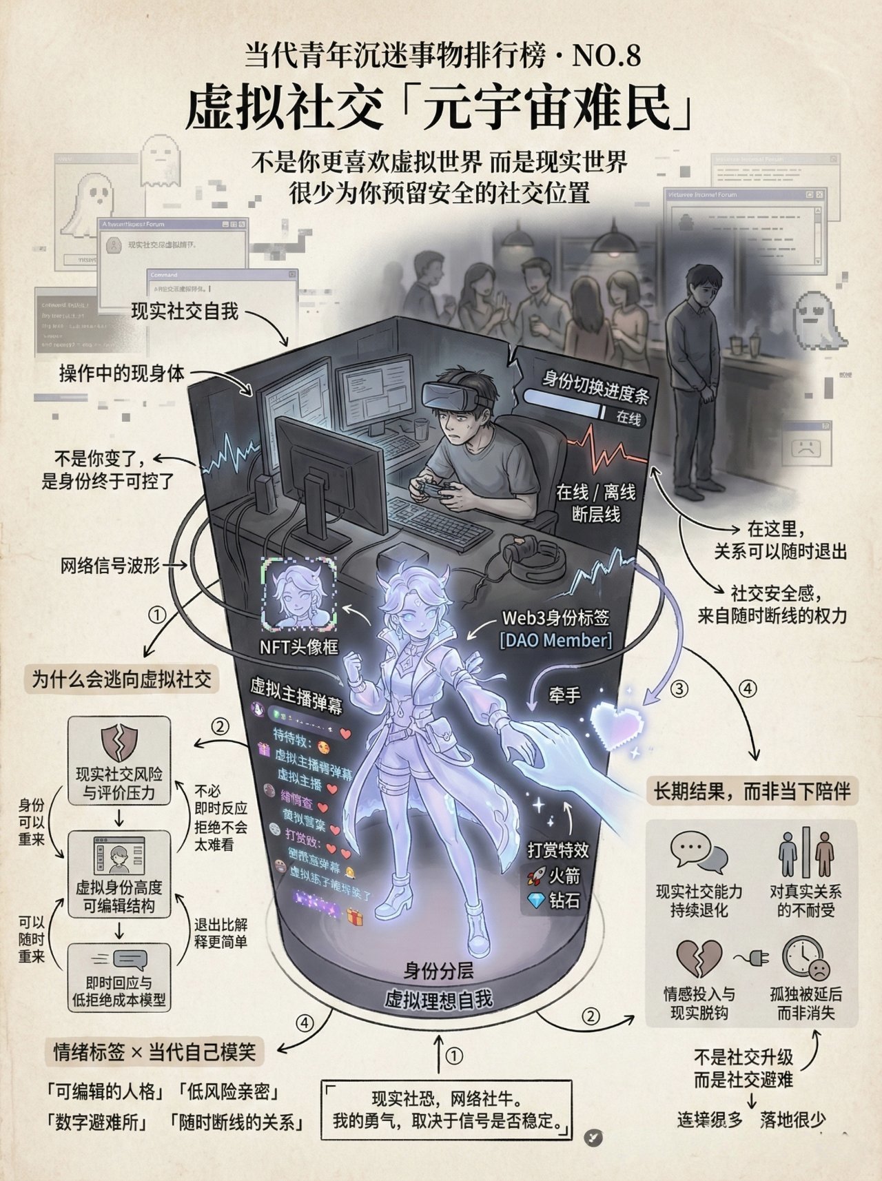 - 在元宇宙、虚拟偶像、AI陪伴里建立亲密关系,用数字关系填补现实的孤独。