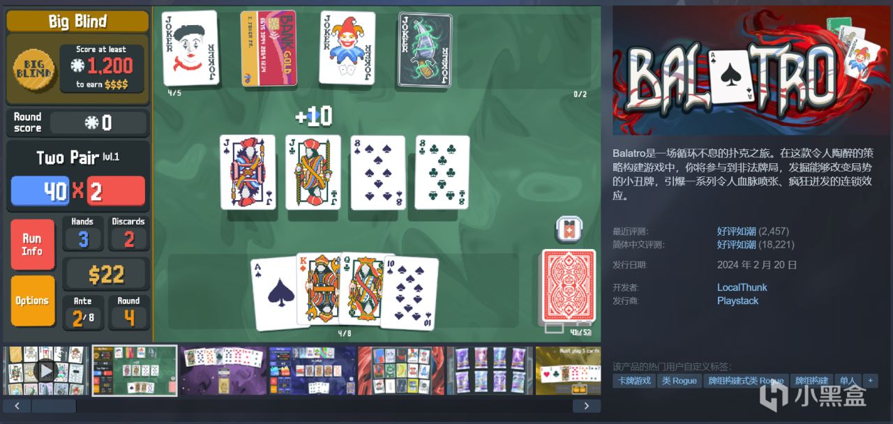 1.《小丑牌》肉鸽卡牌