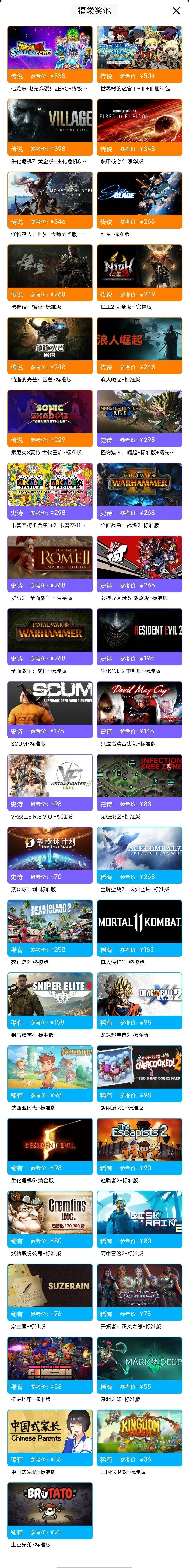 小黑盒本次新春福袋依旧是分为三档“青铜福袋”、“白银福袋”、“黄金福袋” ,没打福袋抽取传说和稀有游戏的概率皆有不同。