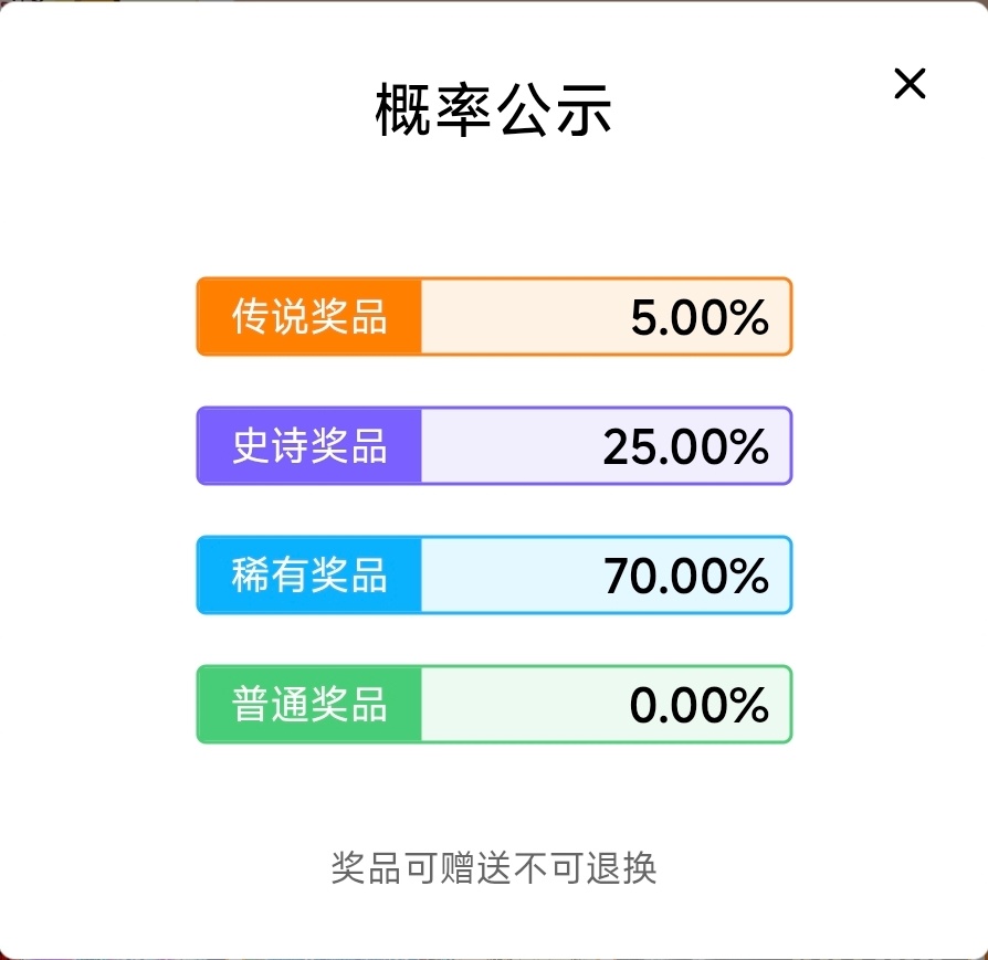 每次抽取可以获得对应奖池中的一件奖品,奖品种类有限且随机,您可能会抽取到重复游戏奖品,请您理性购买。