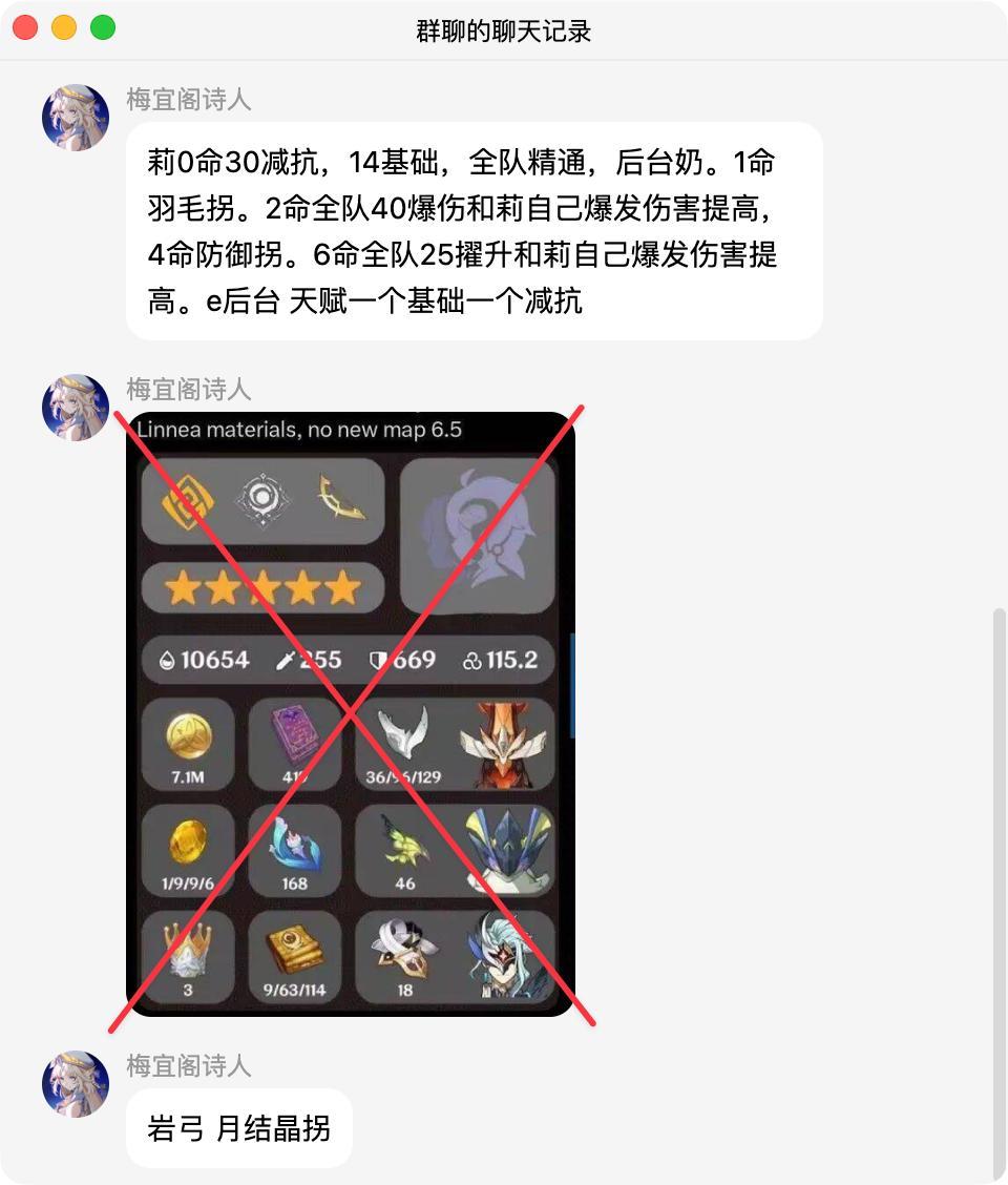 莉0命30减抗,14基础,全队精通,后台奶。1命羽毛拐。2命全队40爆伤和莉自己爆发伤害提高,4命防御拐。6命全队25擢升和莉自己爆发伤害提高。e后台 天赋一个基础一个减抗