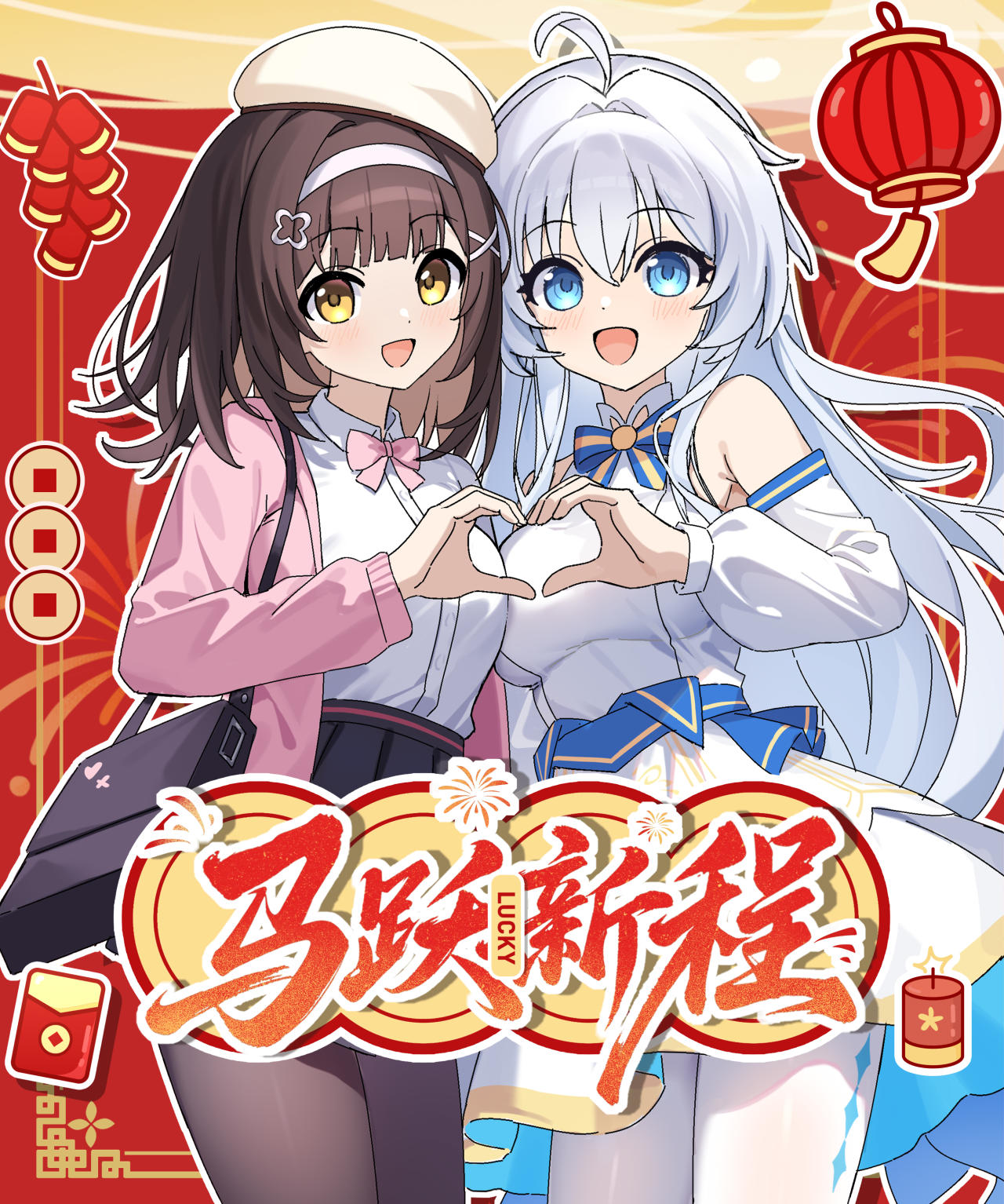 趁着年底抽空摸鱼,把马年的新春贺图画好了。