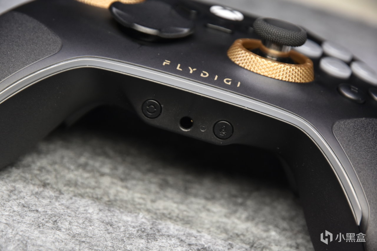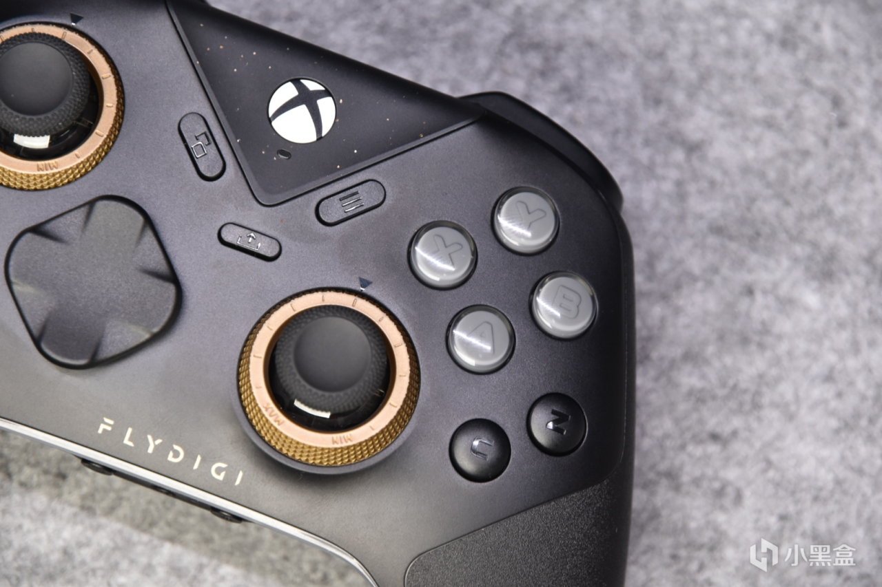 外观方面手柄依旧非常的炫酷,但相比黑武士5Pro多了一个醒目的Xbox标志,以及分享键,正下方也印上了飞智的名称。