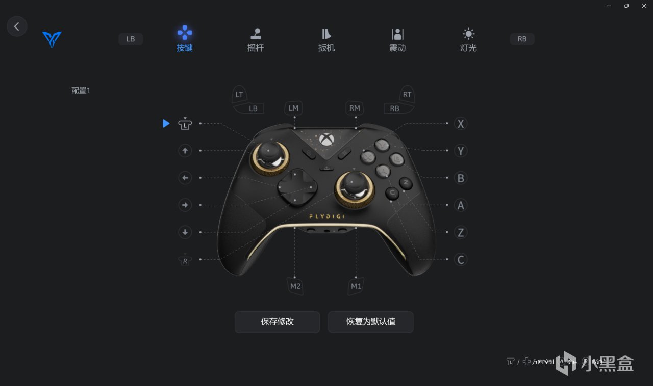 一开始我从飞智空间站打开,发现识别不到这个手柄,后来阅读说明书才明白,需要下载专用的Xbox驱动,而这个新的驱动,有着更加炫酷的界面,不过功能跟之前差不多,可以修改按键,调节摇杆、扳机震动、灯光等,并且支持手柄控制,不过控制起来有点不顺手。