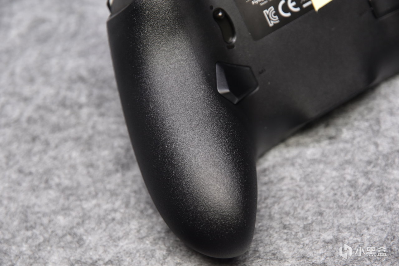 另外手柄的背部,也少了一对可拆卸背键,但手柄本身的扩展按键已经完全够用了,这点倒是影响不大,不过保留的这一对背键,自然握持时手指容易碰到,且触发力度偏轻,比较容易误触,用的时候还是要注意点的。