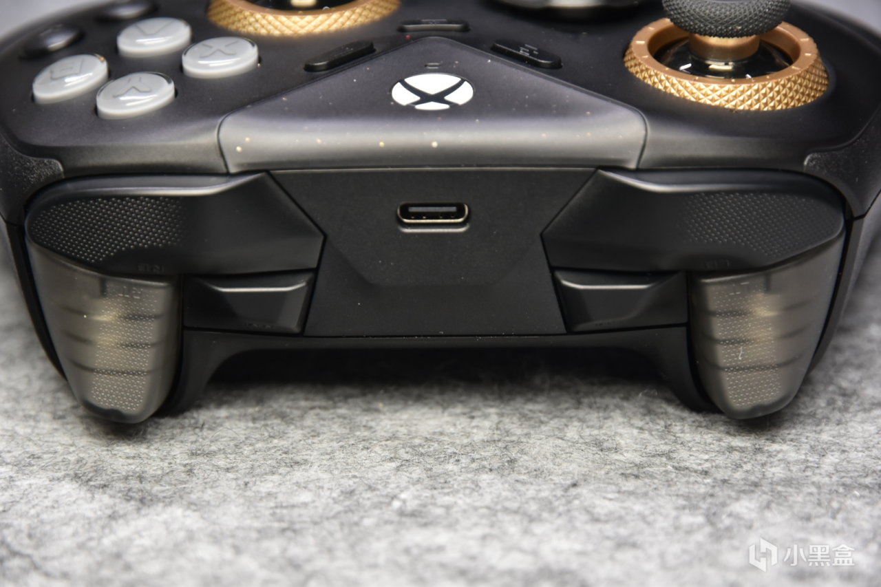 扳机方面手柄依旧采用力切换扳机并搭配有扳机震动,线性模式用起来十分跟手,行程也很适中,用来玩赛车游戏再适合不过;微动模式中,扳机与微动的贴合十分紧密,可以以极快的速度触发扳机,适合射击游戏使用。另外顶部除了一对手感很棒的肩键外,还有一对小肩键,拓展了手柄的按键。