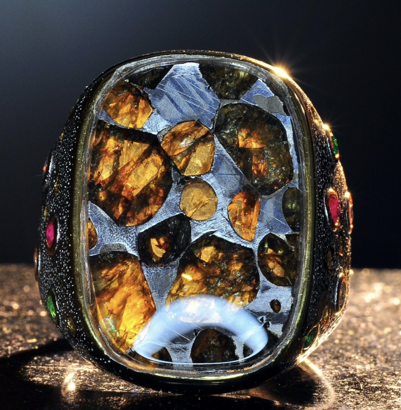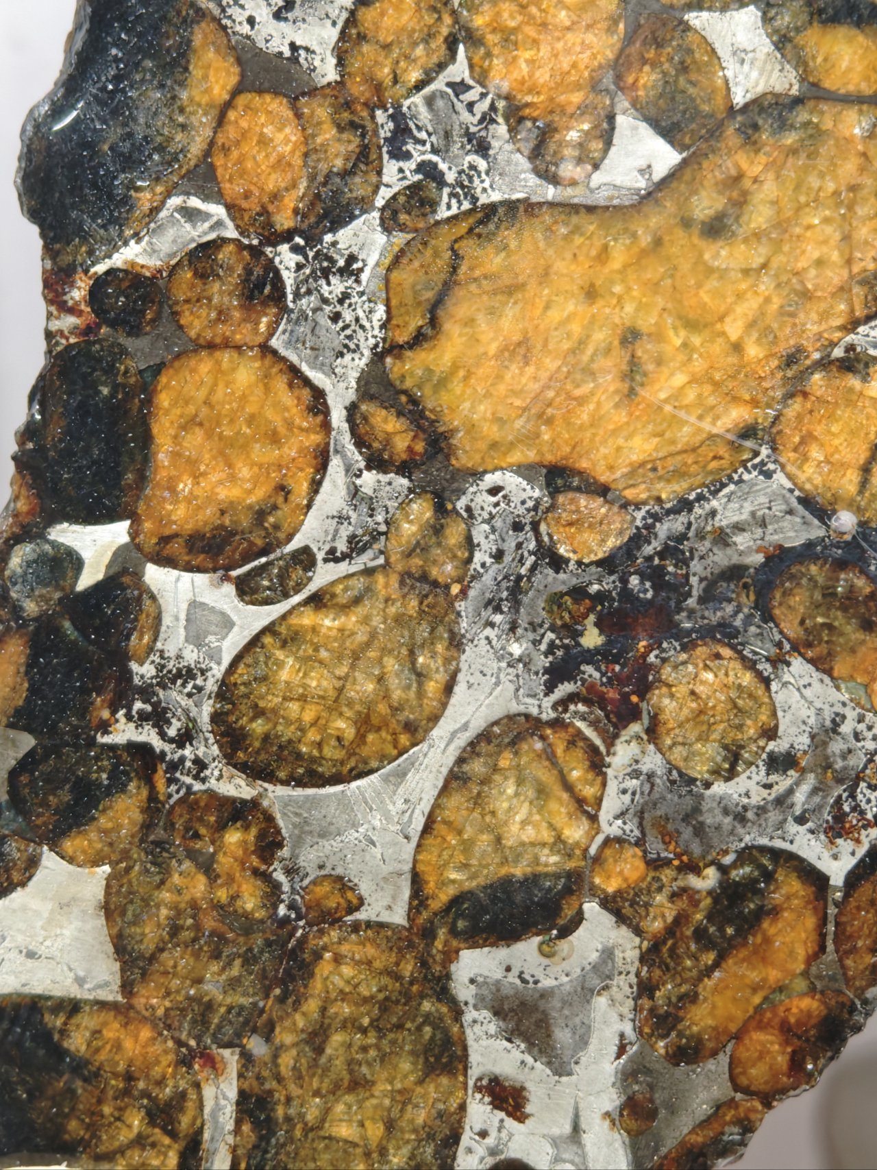 我感觉它真的很漂亮,银色的铁镍合金中点缀着金黄色的橄榄石,像一块来自太空的牛轧糖