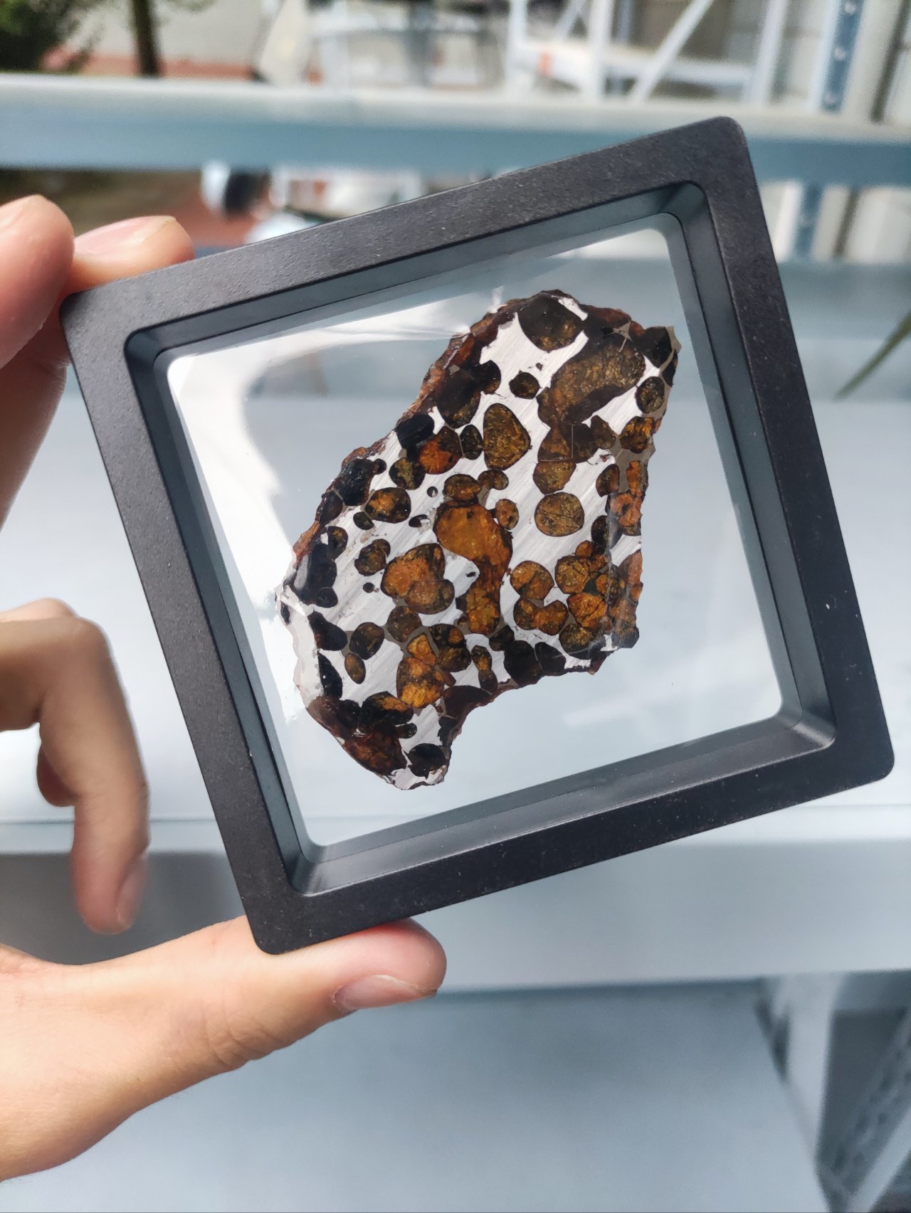 一般售卖的话,商家会把陨石切成很薄很薄的片片来卖,一两百就可以买到不错的一片,框起来十分好看