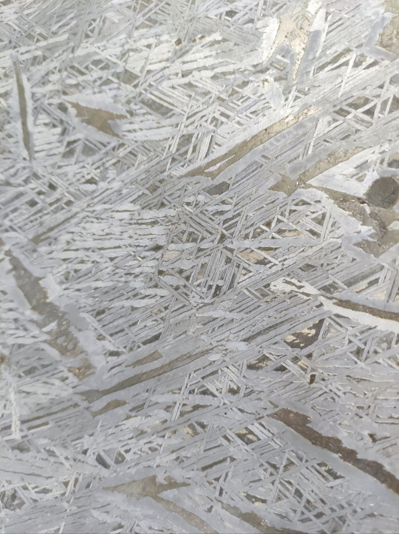 这种熔融状态的合金在太空中缓慢冷却,就形成了陨石独特的纹理——维斯台登纹,这是陨石独特的太空印记