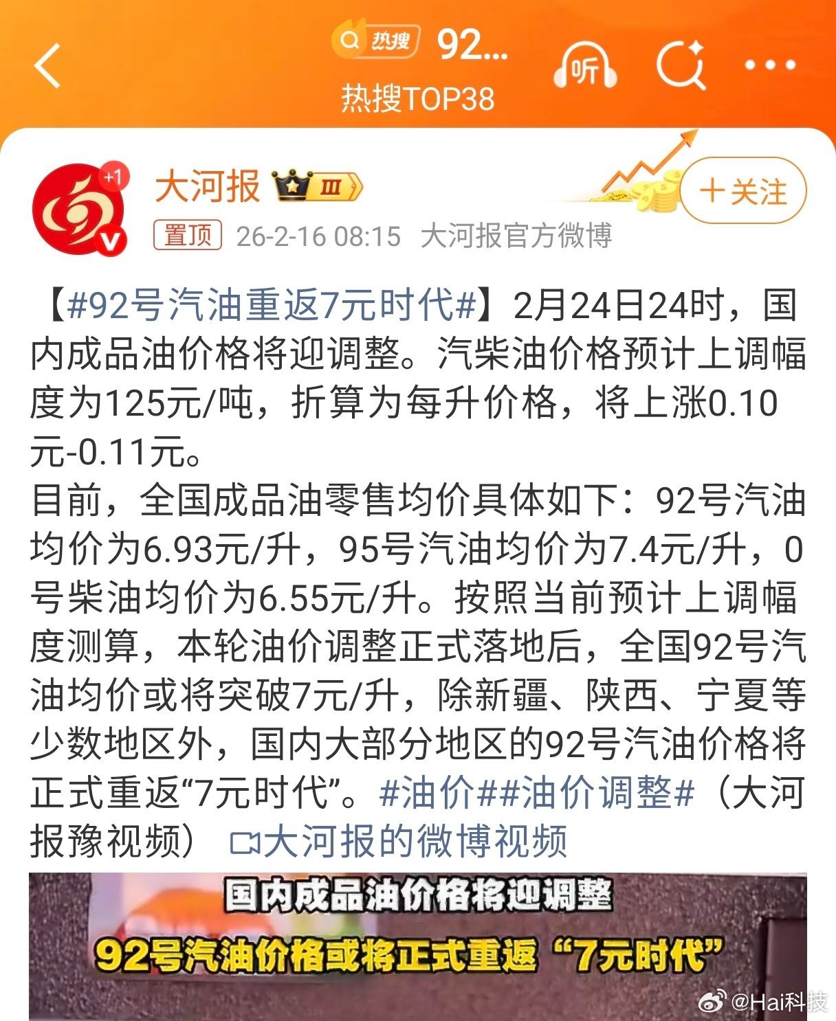 - 目前全國成品油零售均價:92號汽油6.93元/升,95號汽油7.4元/升,0號柴油6.55元/升。